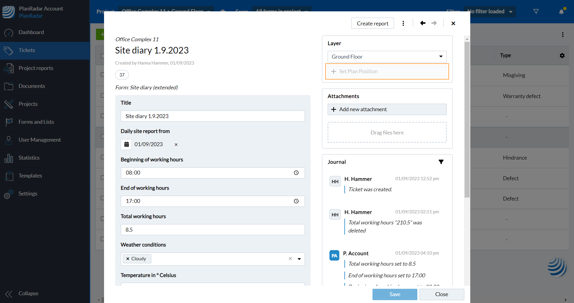 Normalerweise legen Sie die Planposition bei der Erstellung eines Tickets fest. Es ist möglich, ein Ticket ohne Planposition zu erstellen und diese später hinzuzufügen.