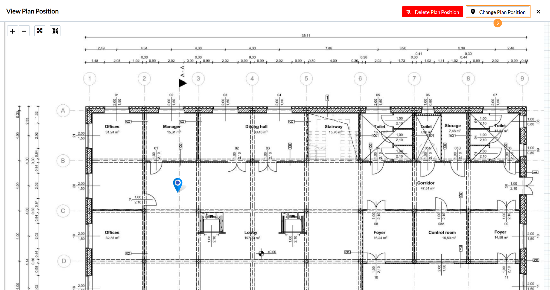 - Klicken Sie auf die Planpositionsvorschau, um den Bildschirm Planposition anzeigen zu öffnen.