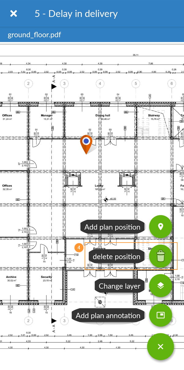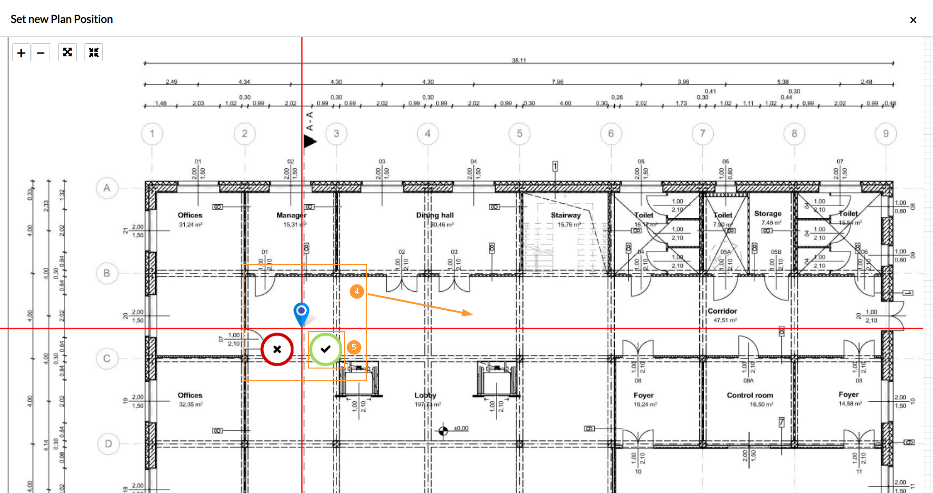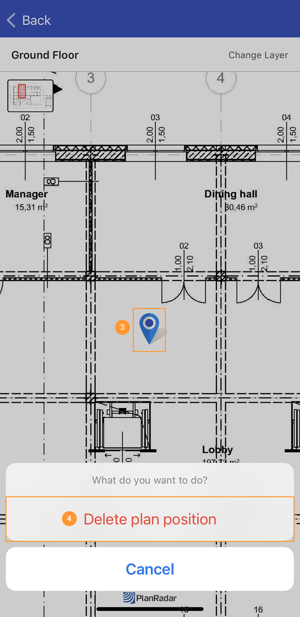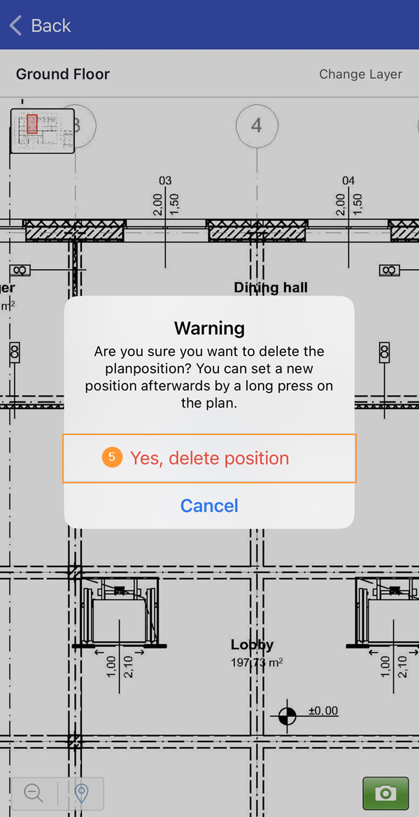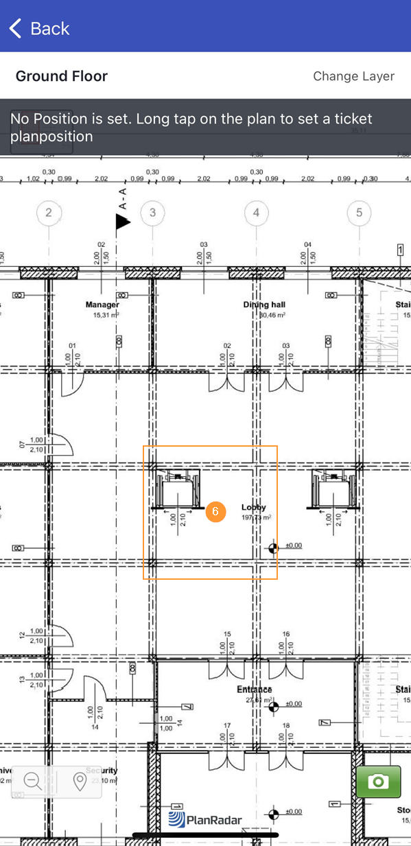 Tippen Sie lange auf den Plan, um eine Planposition festzulegen