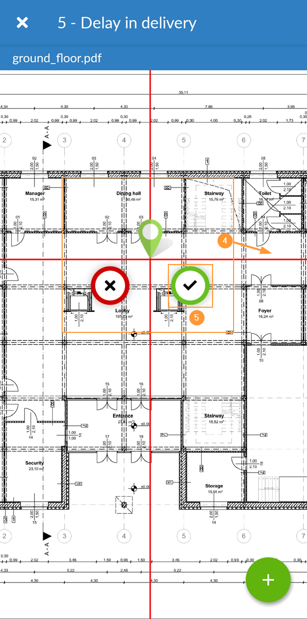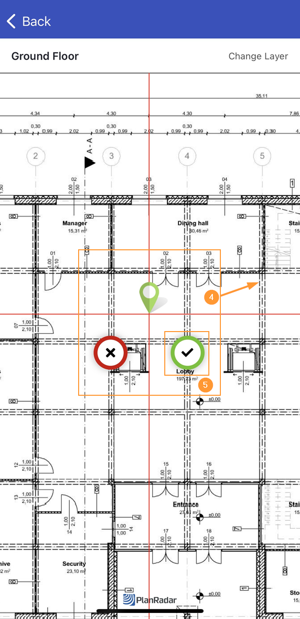 - Tippen Sie auf ✔, um den Plan zu bestätigen und die Position zu speichern