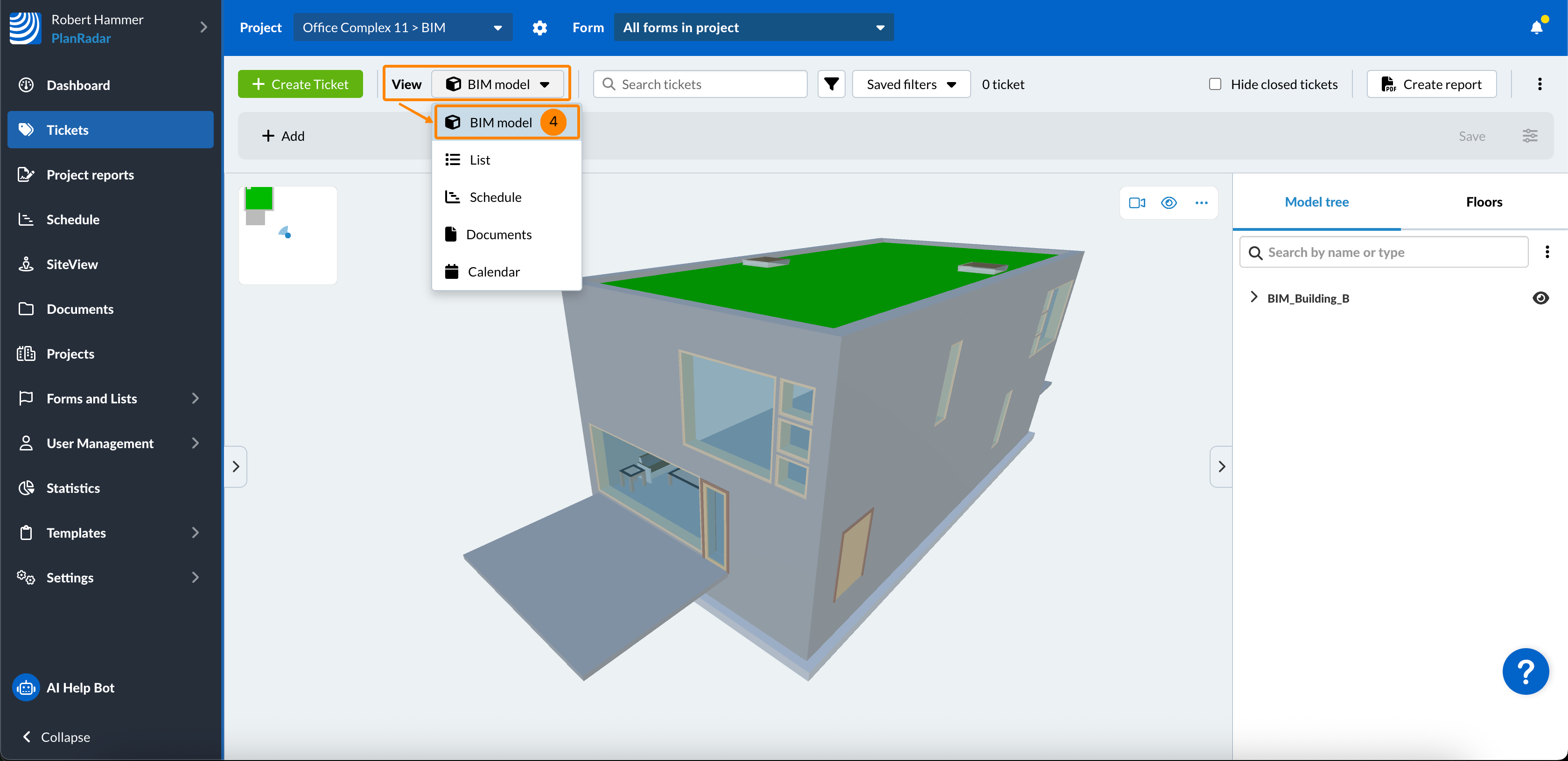 - Klicken Sie auf BIM-Modell im Ansicht Dropdown-Menü
