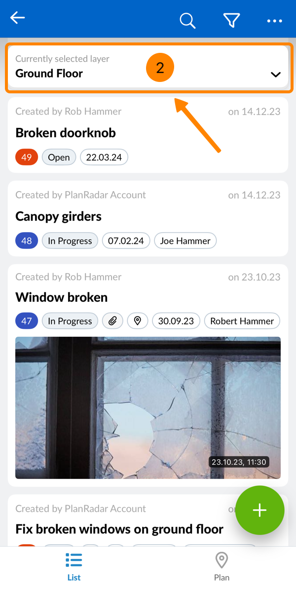 Wenn Sie Elemente wie Stockwerke oder Objekte ausblenden, werden auch deren Ticketpins ausgeblendet.