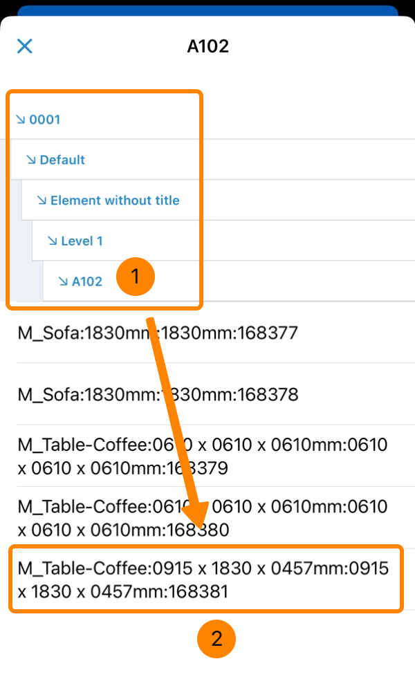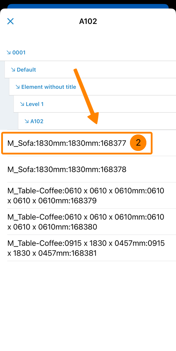 - Tippen Sie auf ein Objekt, z.B. M_Sofa