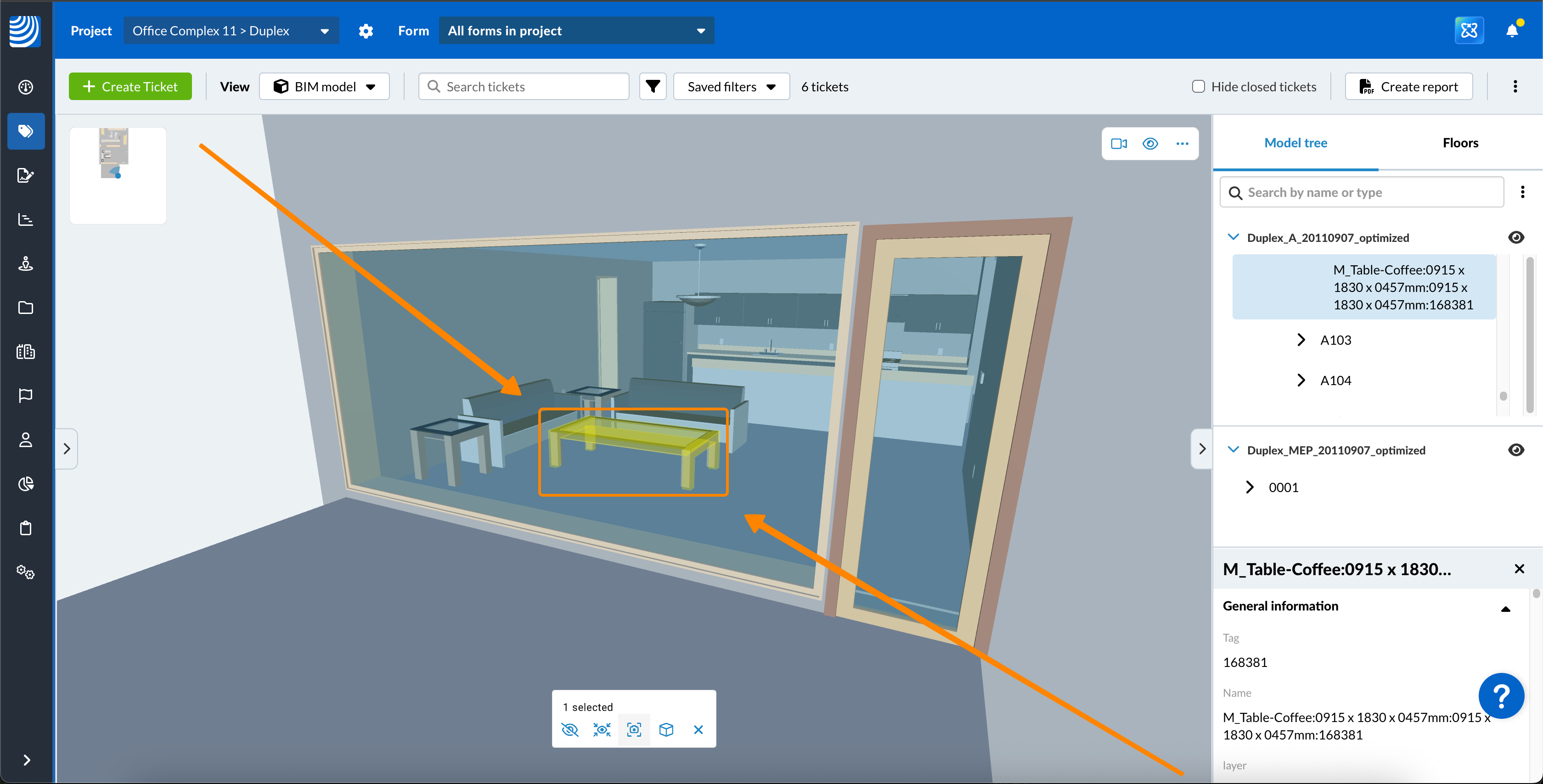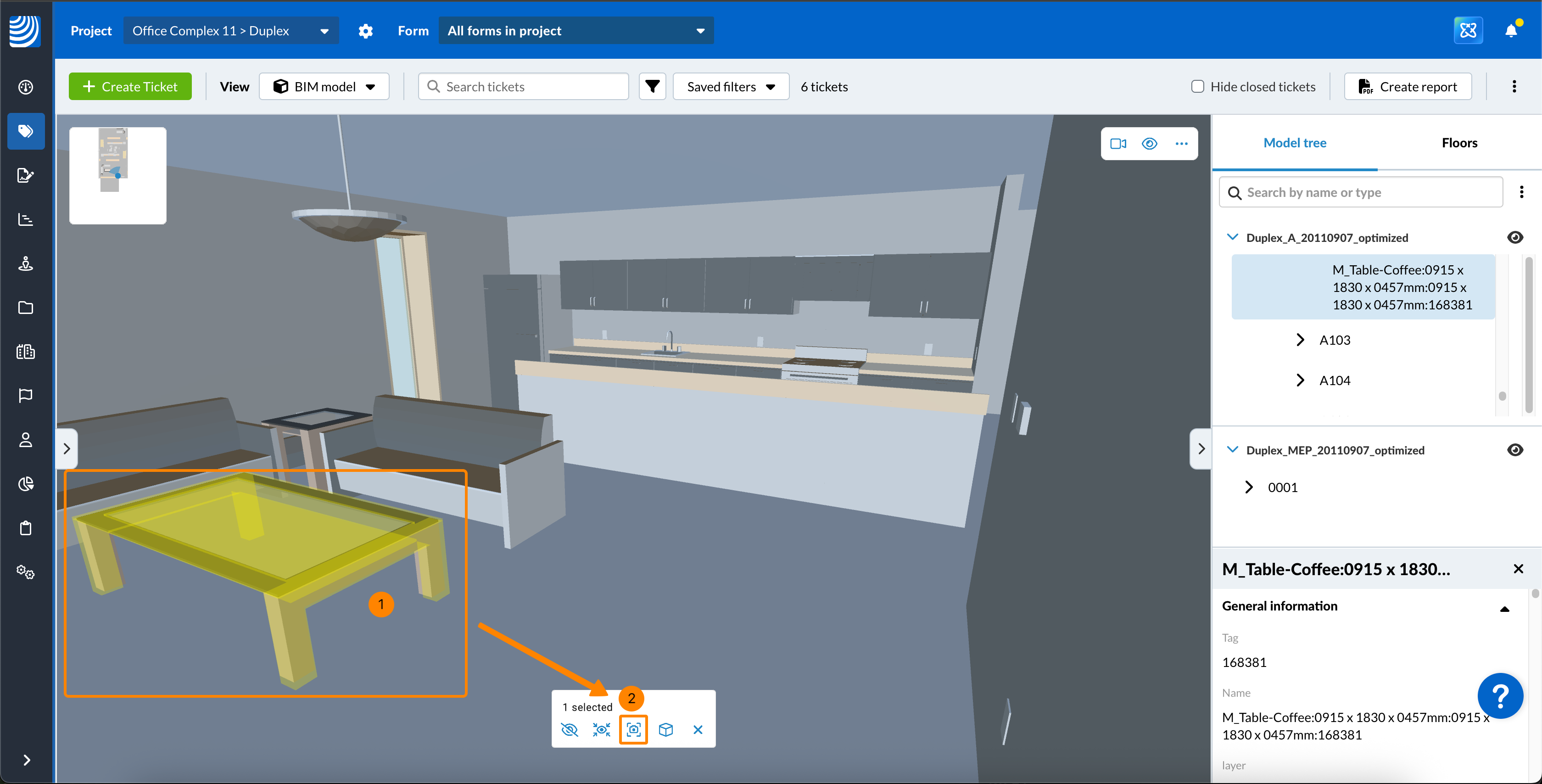 Mit dem BIM-Viewer können Sie Tickets in BIM-Modellen erstellen und anzeigen.