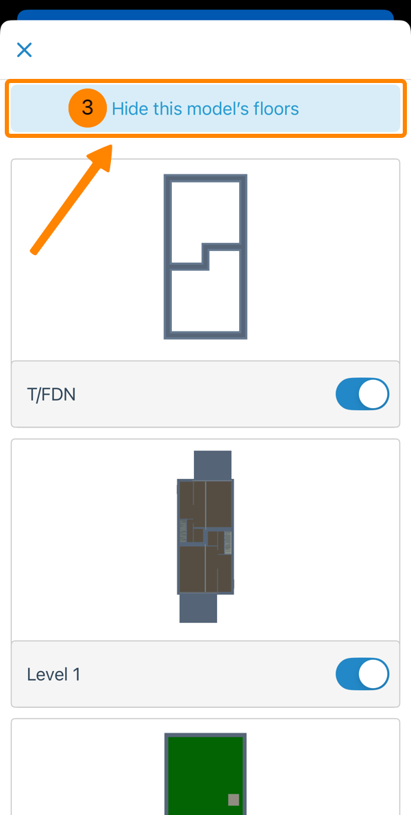 - Tippen Sie auf Stockwerke des Modells ausblenden