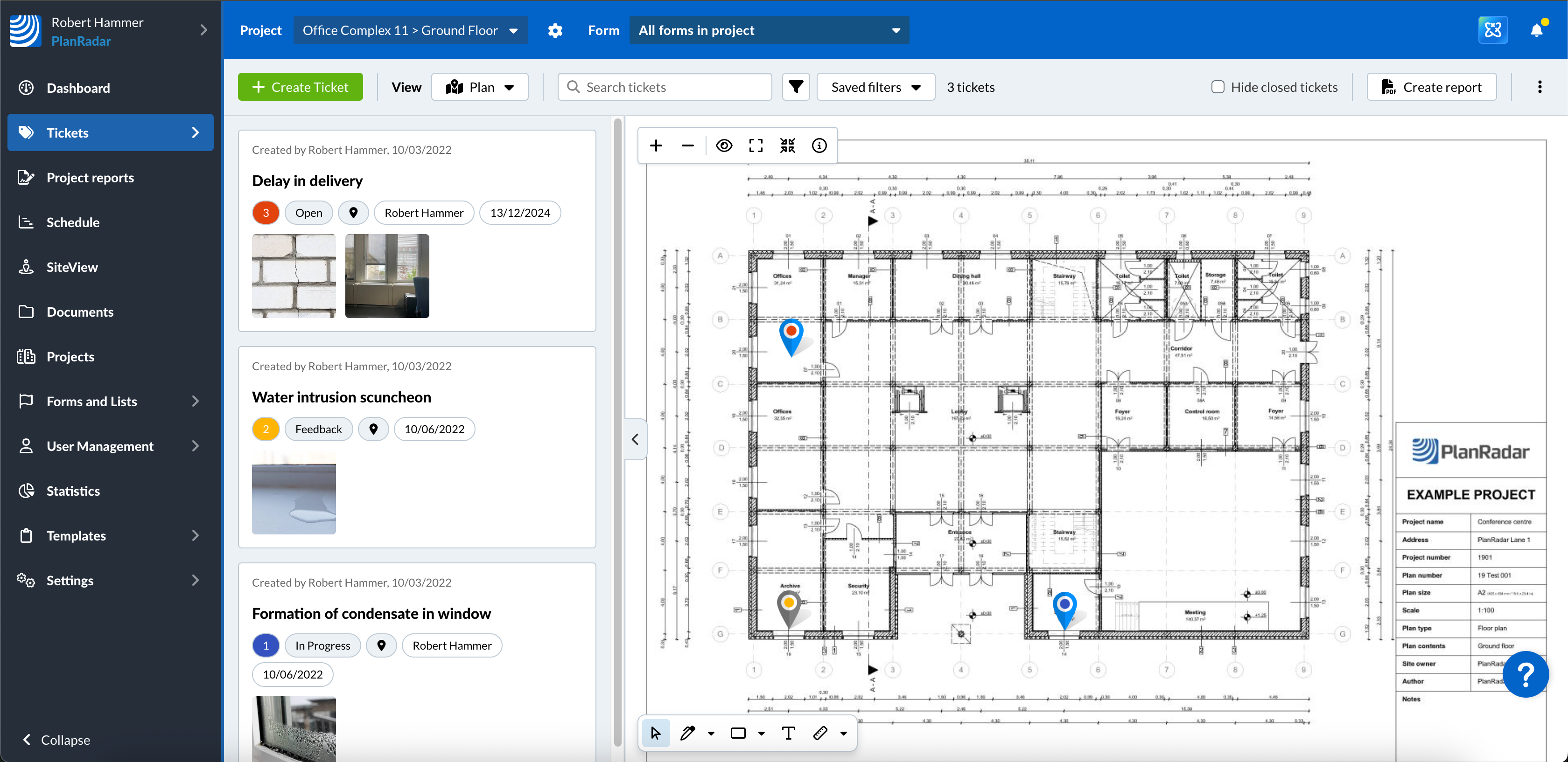 Verwenden Sie die Tickets Planansicht, um zu sehen, wo sich die Tickets auf dem Plan befinden.