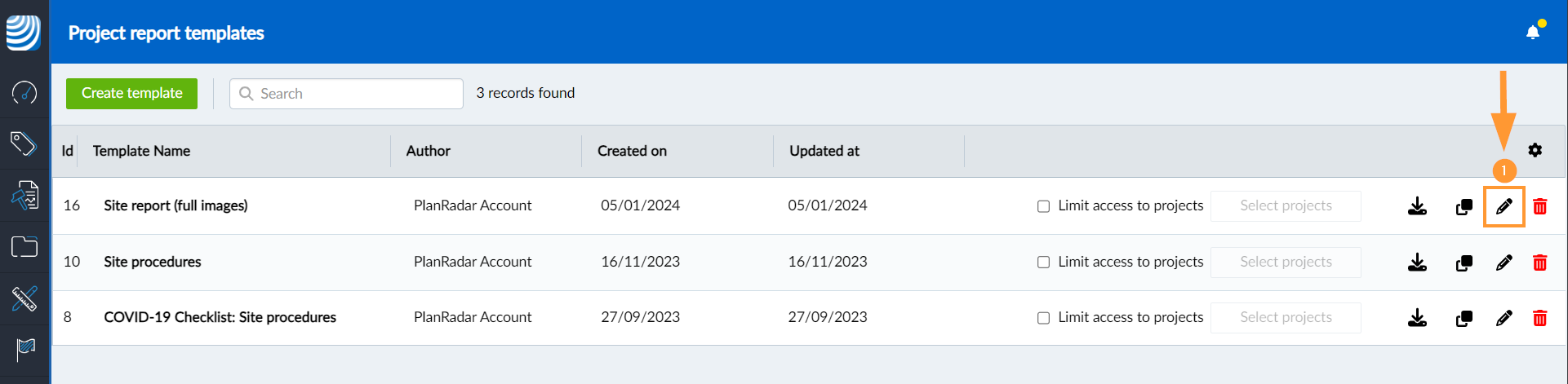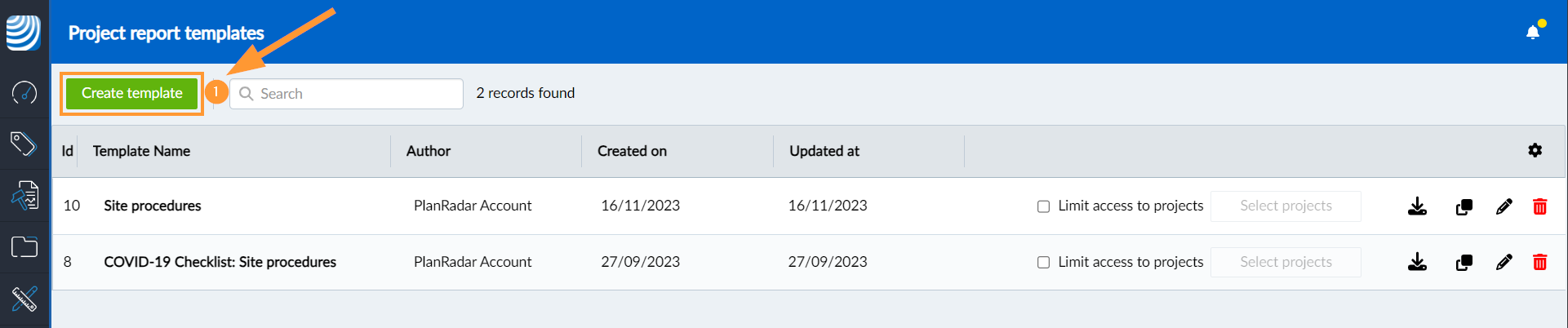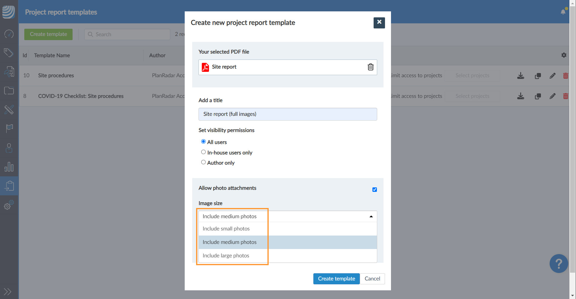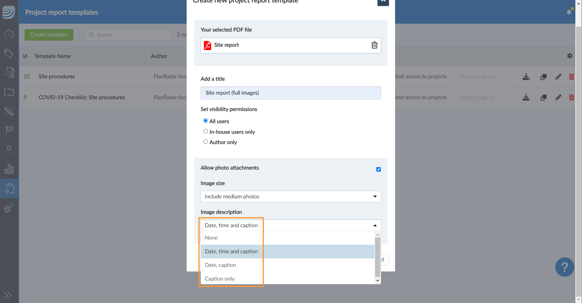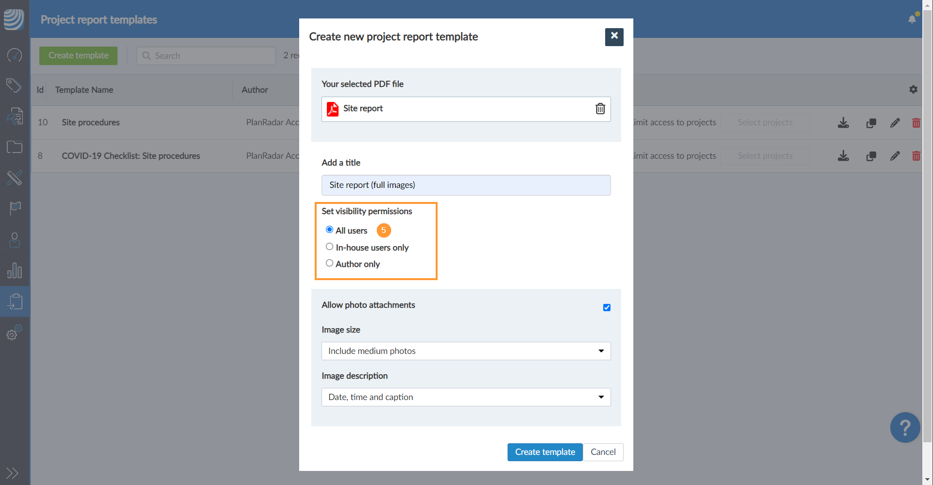 - Fahren Sie mit der Erstellung einer Projektberichtsvorlage in PlanRadar fort und laden Sie Ihr PDF-Formular hoch.