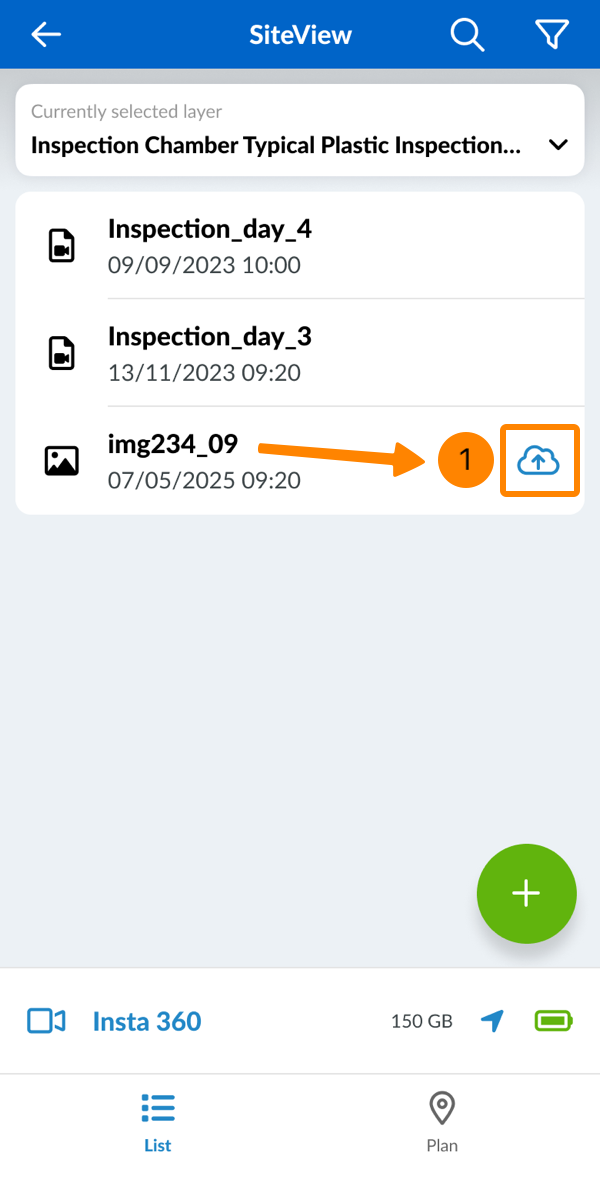 Stellen Sie sicher, dass Ihre App mit der Kamera verbunden ist (siehe Begehung erstellen mit der PlanRadar Mobile App > Kamera verbinden).