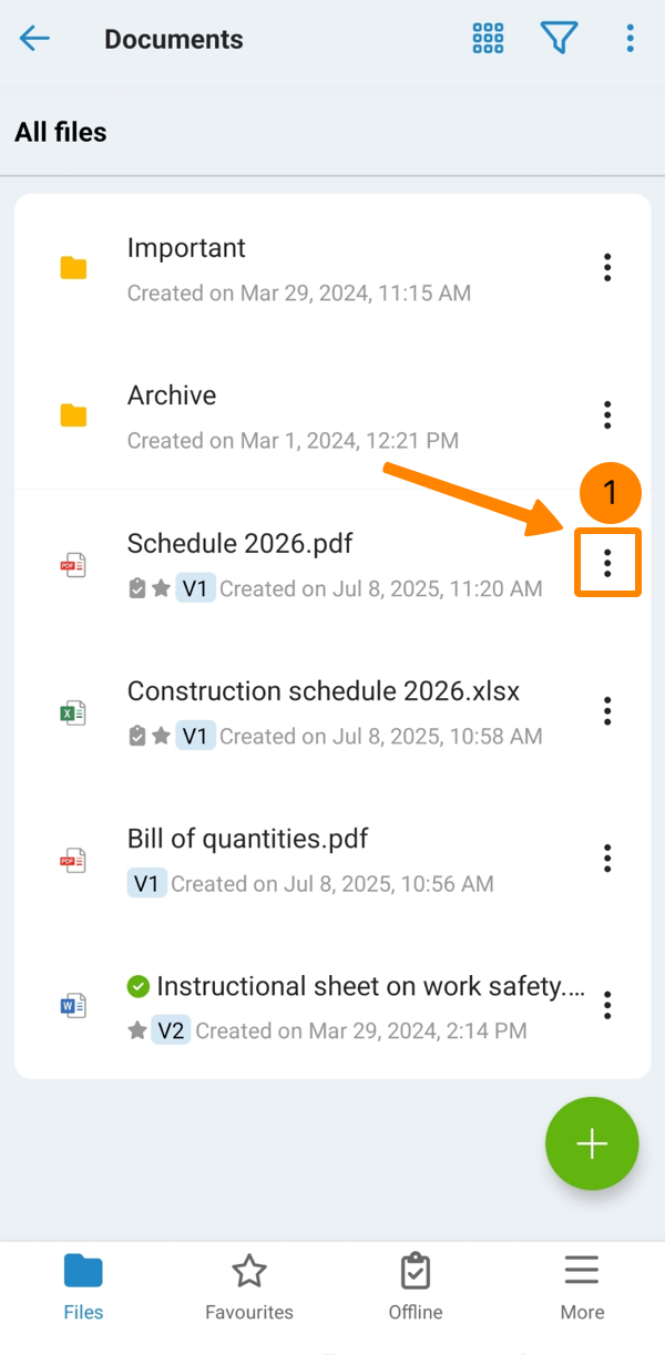 - Tippen Sie auf Alle Dateien oder Favoriten oder Freigegeben