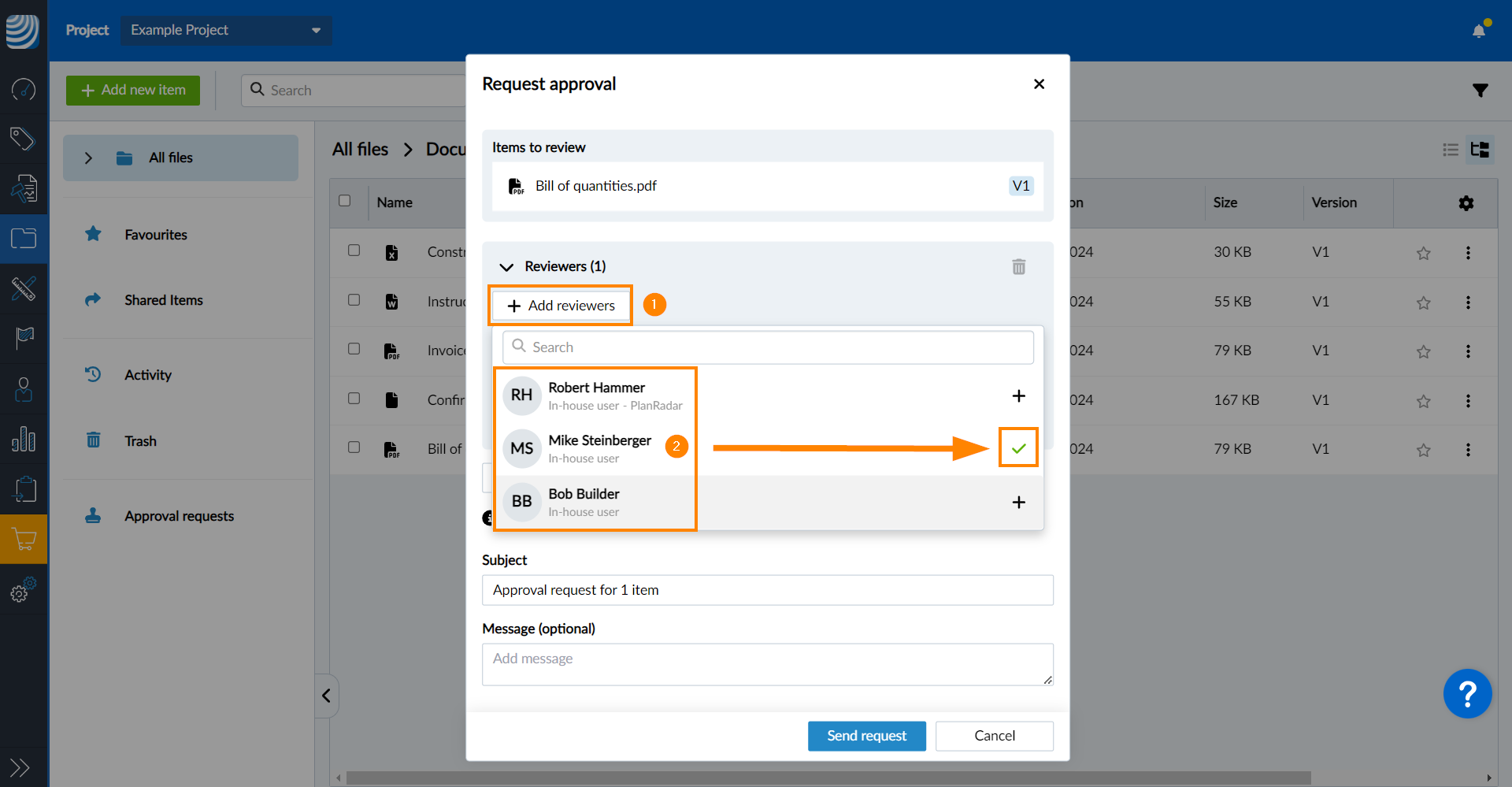 - Wählen Sie einen oder mehrere Rezensenten aus und bestätigen Sie mit Fertig
