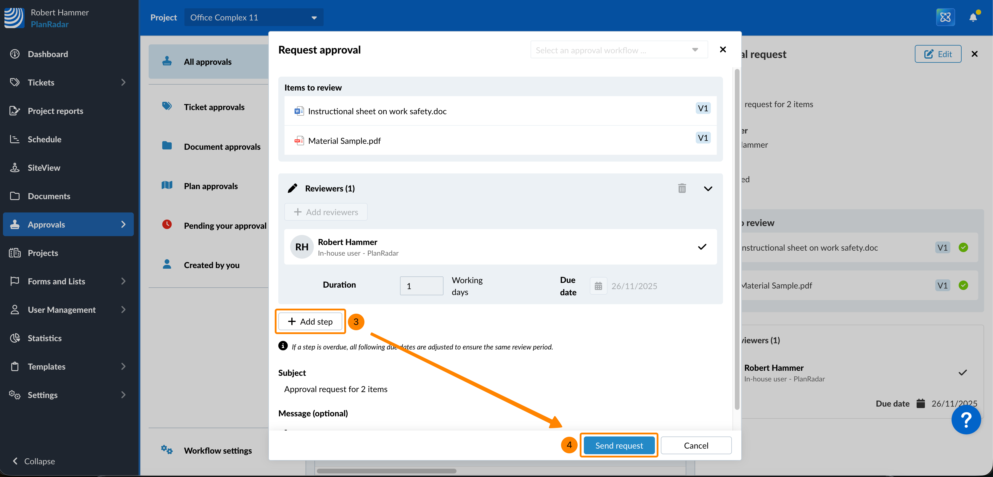 - Sie können weitere Schritte und Prüfer hinzufügen, nachdem ein Dokument Freigabeanforderung fertiggestellt wurde.