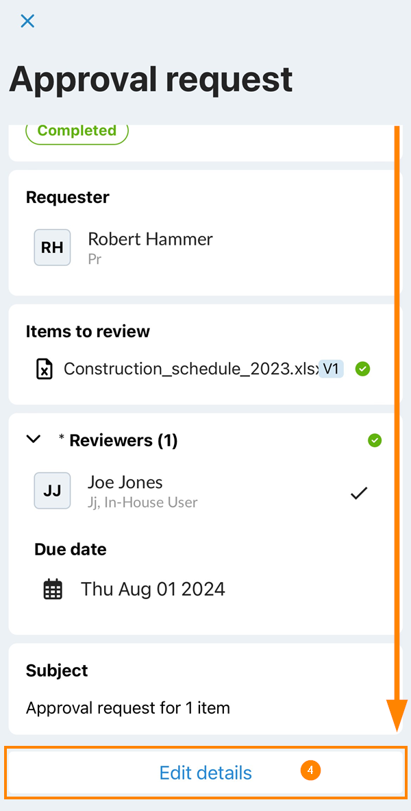 - Sie können die Schritte, Prüfer und die Dauer dieses Freigabeanforderung nur ändern, wenn die Person, die den Workflow erstellt hat, Ihnen dies erlaubt hat. Der Betreff und die Nachricht können immer bearbeitet werden.