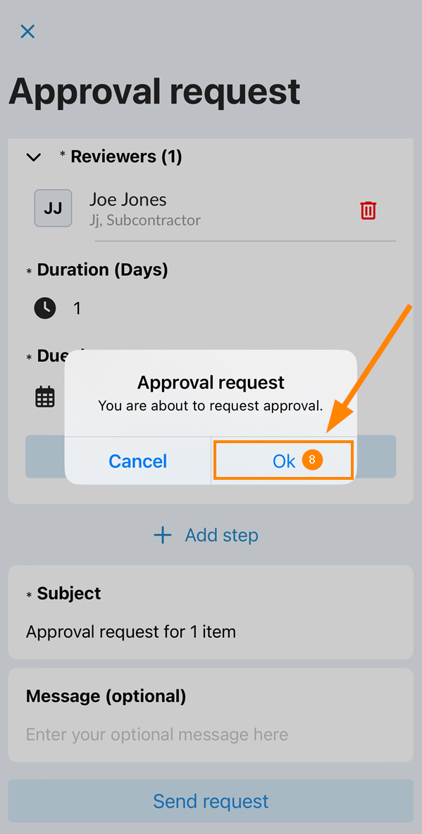 - Tippen Sie auf das Feld Freigabeanforderung