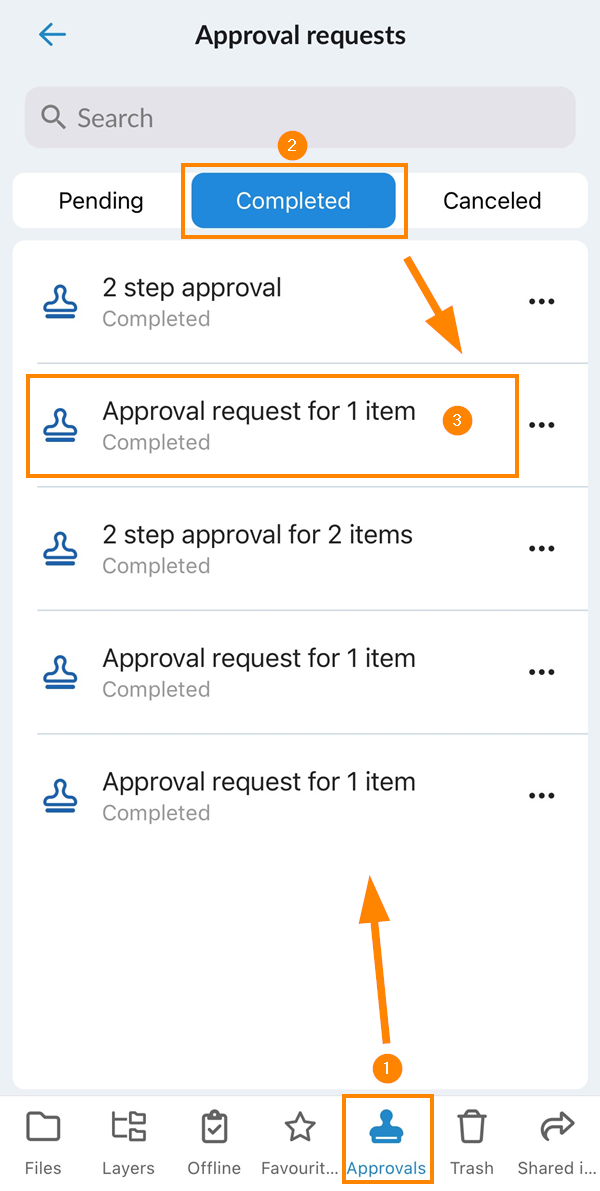 Ordner können nicht genehmigt werden. Es ist jedoch möglich, alle Dateien innerhalb eines Ordners auszuwählen und die Genehmigung als Massenaktion zu beantragen.