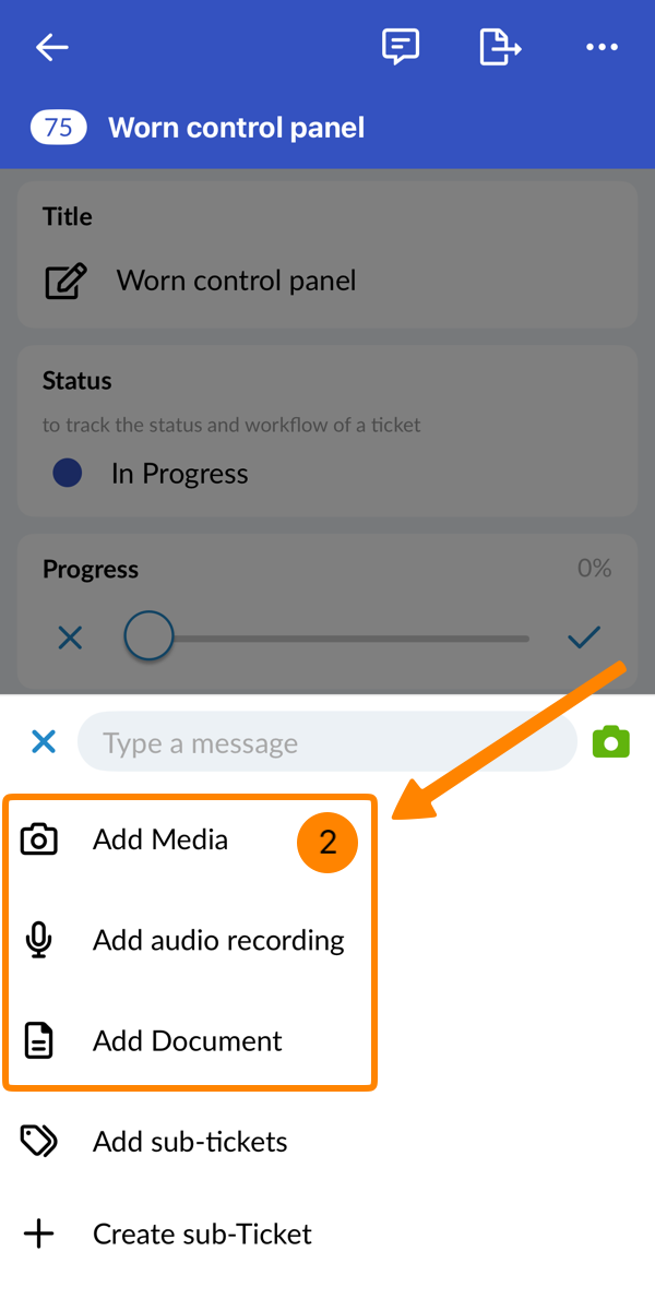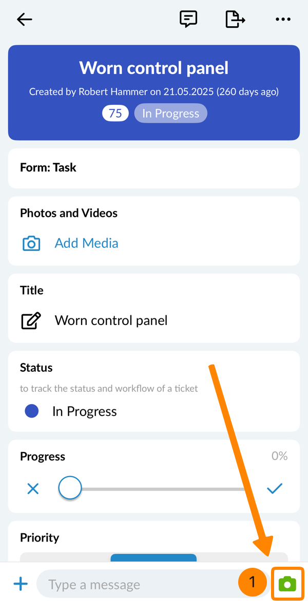 - Tippen Sie auf das Hochladen-Symbol, um das Foto an das Ticket anzuhängen