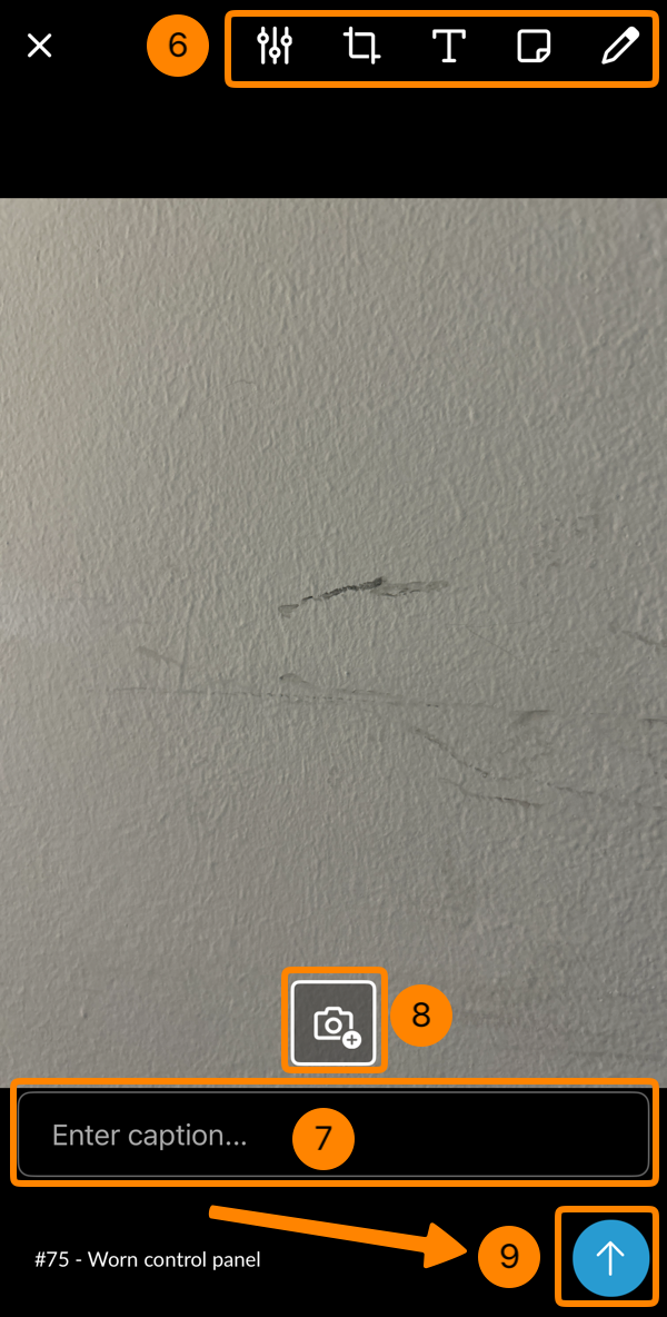 - Optional: Verwenden Sie die Bearbeitungswerkzeuge, um das Foto anzupassen oder Anmerkungen hinzuzufügen. Lesen Sie mehr unter Photo Editor.