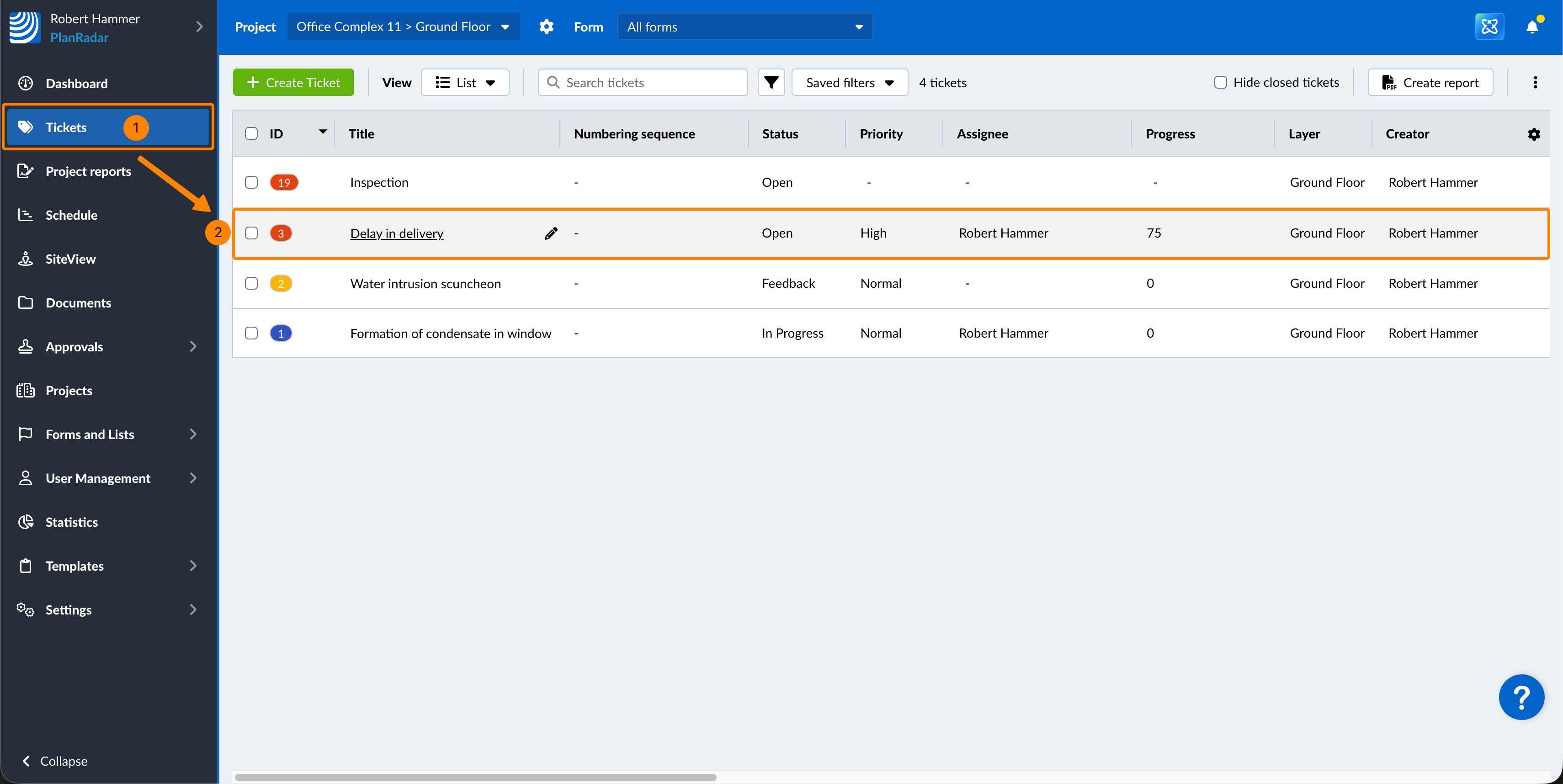 - Click Tickets