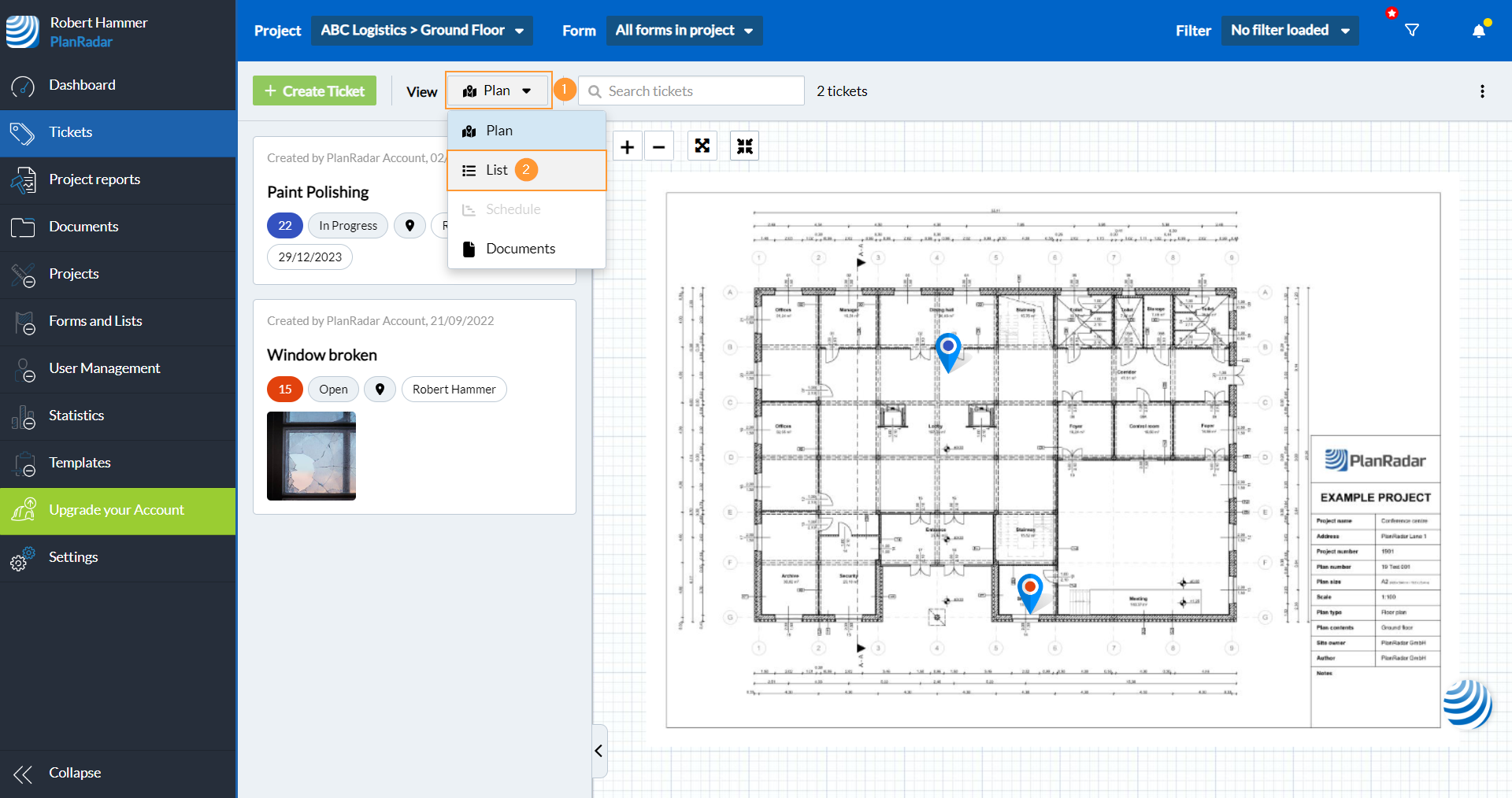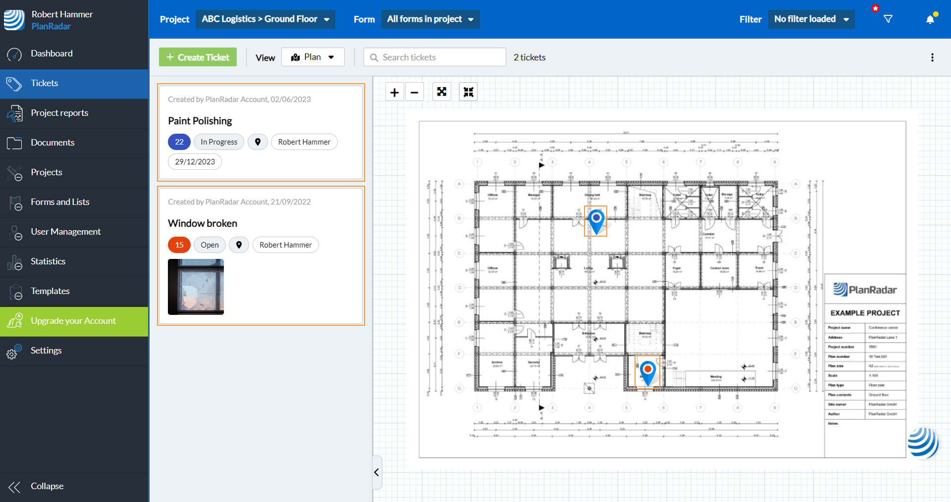 La empresa que te invitó a trabajar en un proyecto de PlanRadar ya lo tiene todo configurado. Lo más probable es que alguien ya te haya asignado tickets para resolver.