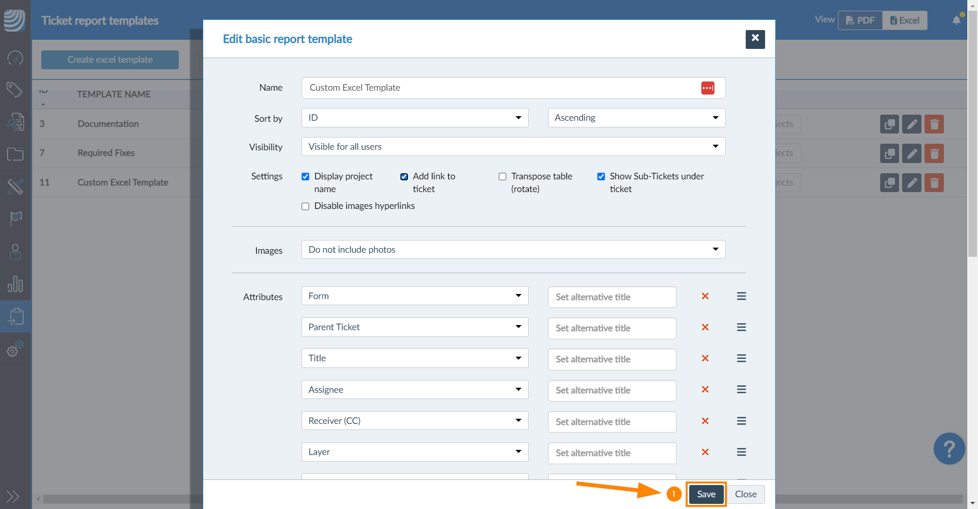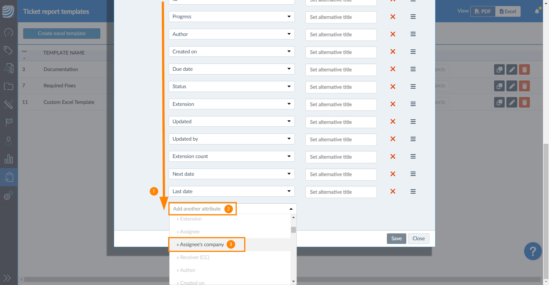 Si esto no se ajusta a sus necesidades, puede crear una plantilla de Excel para exportar los tickets como se describe a continuación.