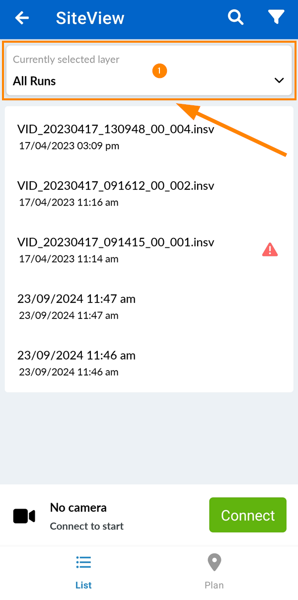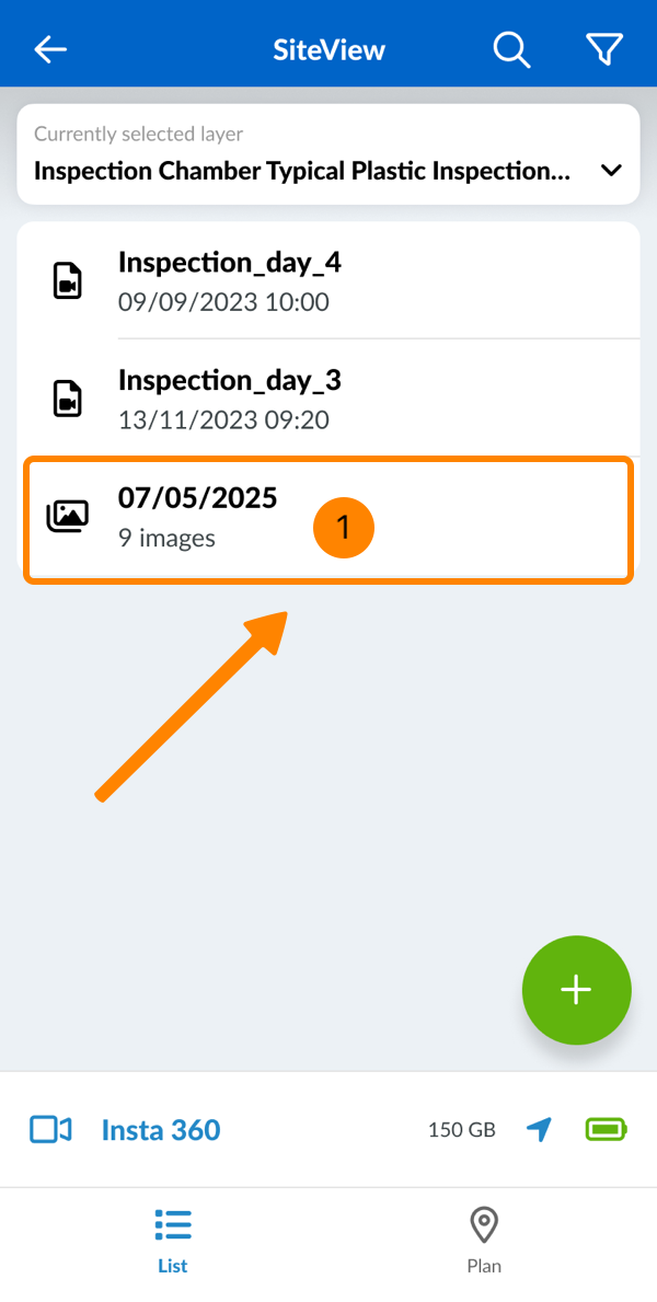 Asegúrese de que su aplicación está conectada a la cámara (consulte Crear una carrera con la aplicación móvil PlanRadar > Conecte su cámara).