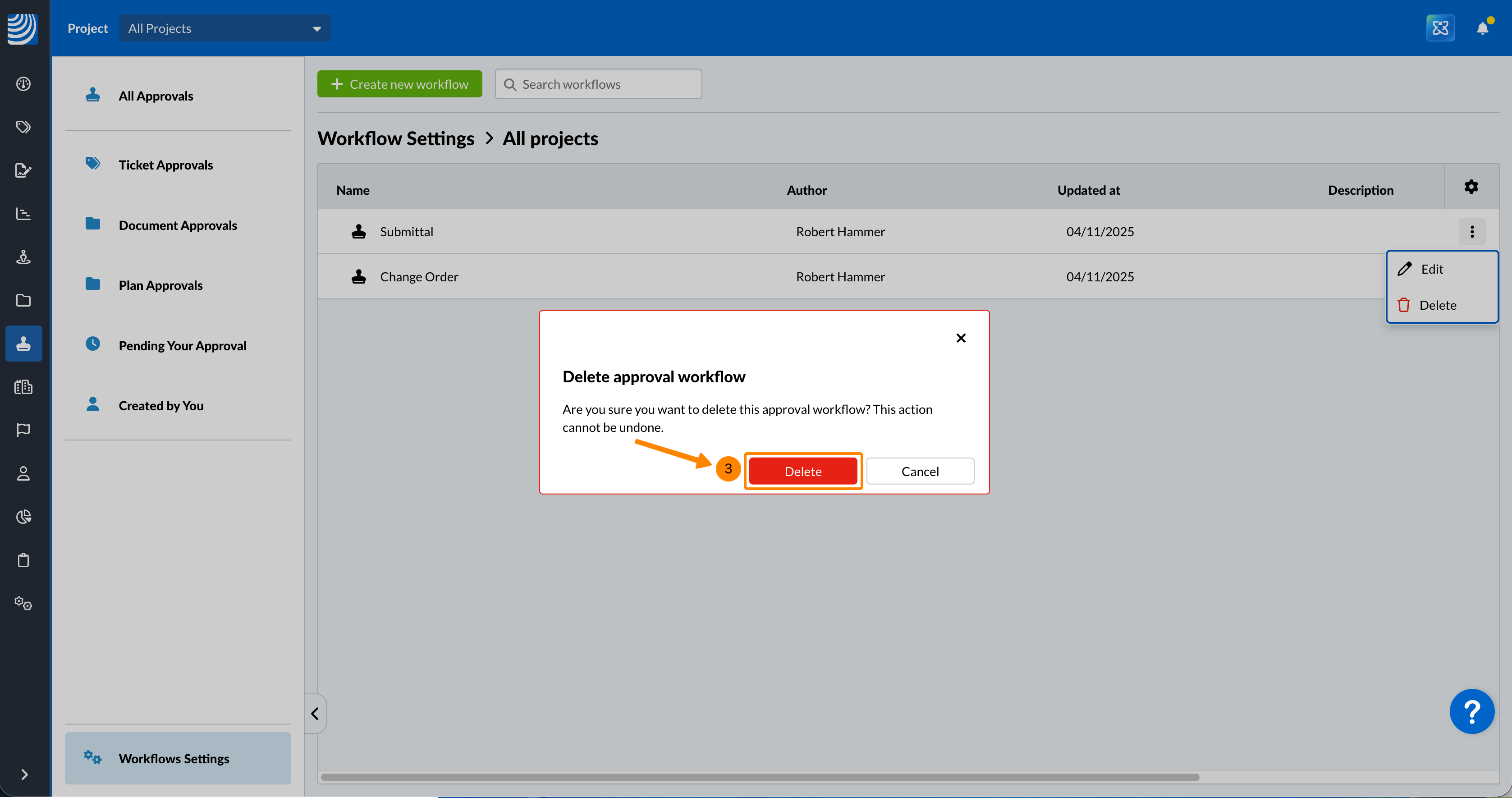 - Abra el menú more del flujo de trabajo de aprobación que desea eliminar