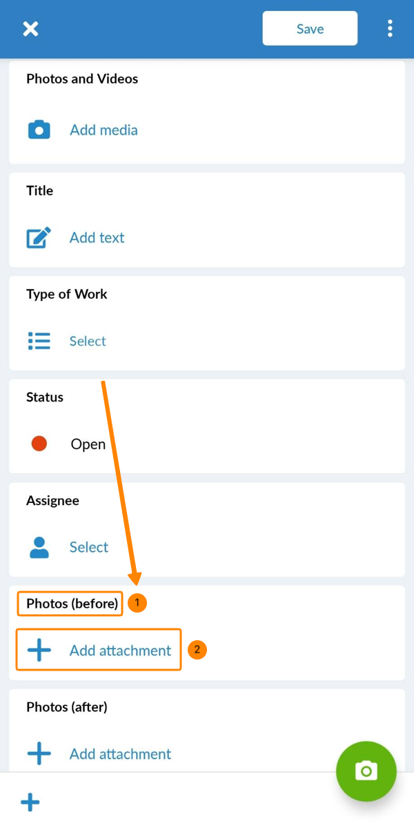 - Desplácese hasta el campo de archivos adjuntos, por ejemplo Fotos (antes)