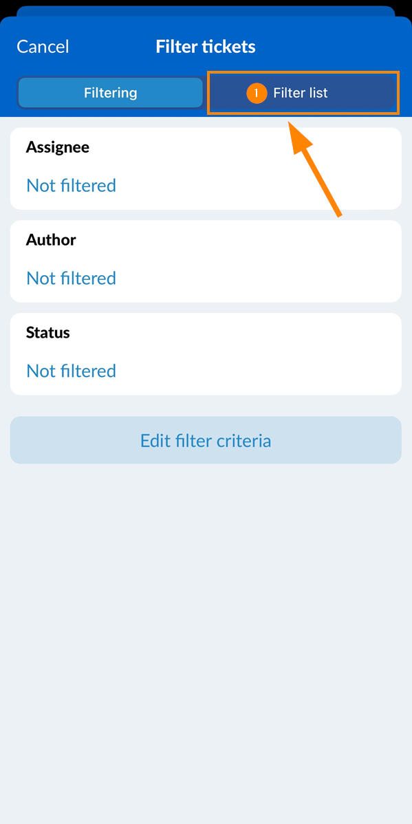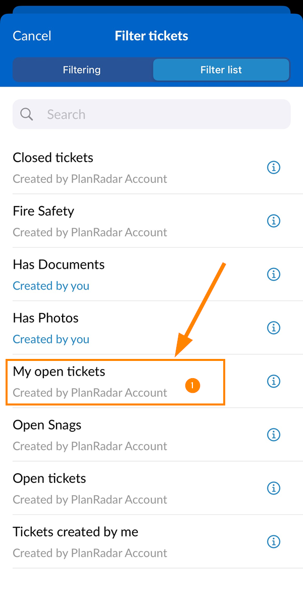- Sélectionnez un filtre, par exemple Mes tickets ouverts