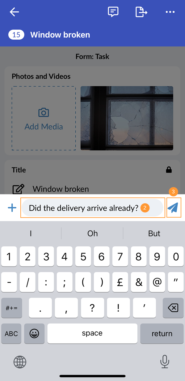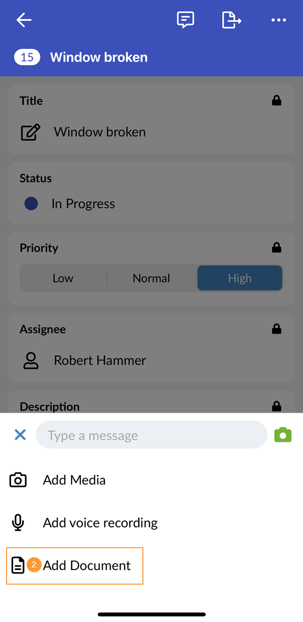 Lorsque vous créez une tâche comme décrit ci-dessus, vous pouvez également y ajouter des photos, des vidéos, un enregistrement vocal et des documents.