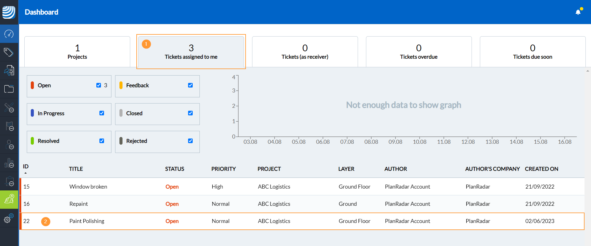 Pour ouvrir un ticket, cliquez sur le ticket ou sur l'épingle du ticket :