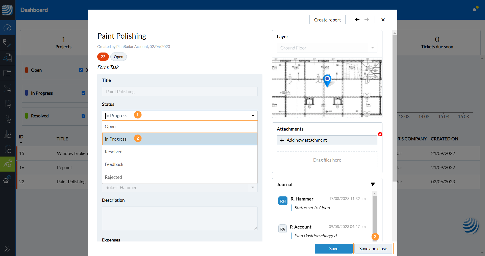 - Tapez sur un ticket pour ouvrir et modifier le ticket.