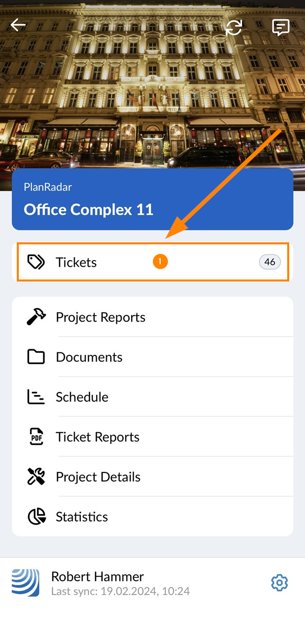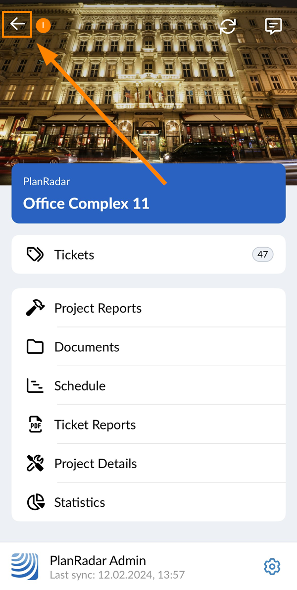 Pour lancer la synchronisation de votre appareil mobile avec le serveur PlanRadar :