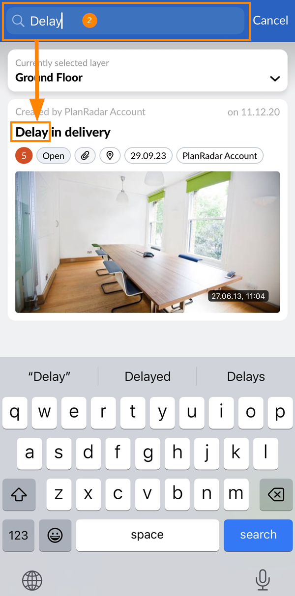 Que vous soyez dans la vue en liste ou dans la vue en plan, vous pouvez toujours rechercher des tâches en utilisant du texte. Seules les tâches correspondantes seront affichées jusqu'à ce que vous annuliez la recherche.