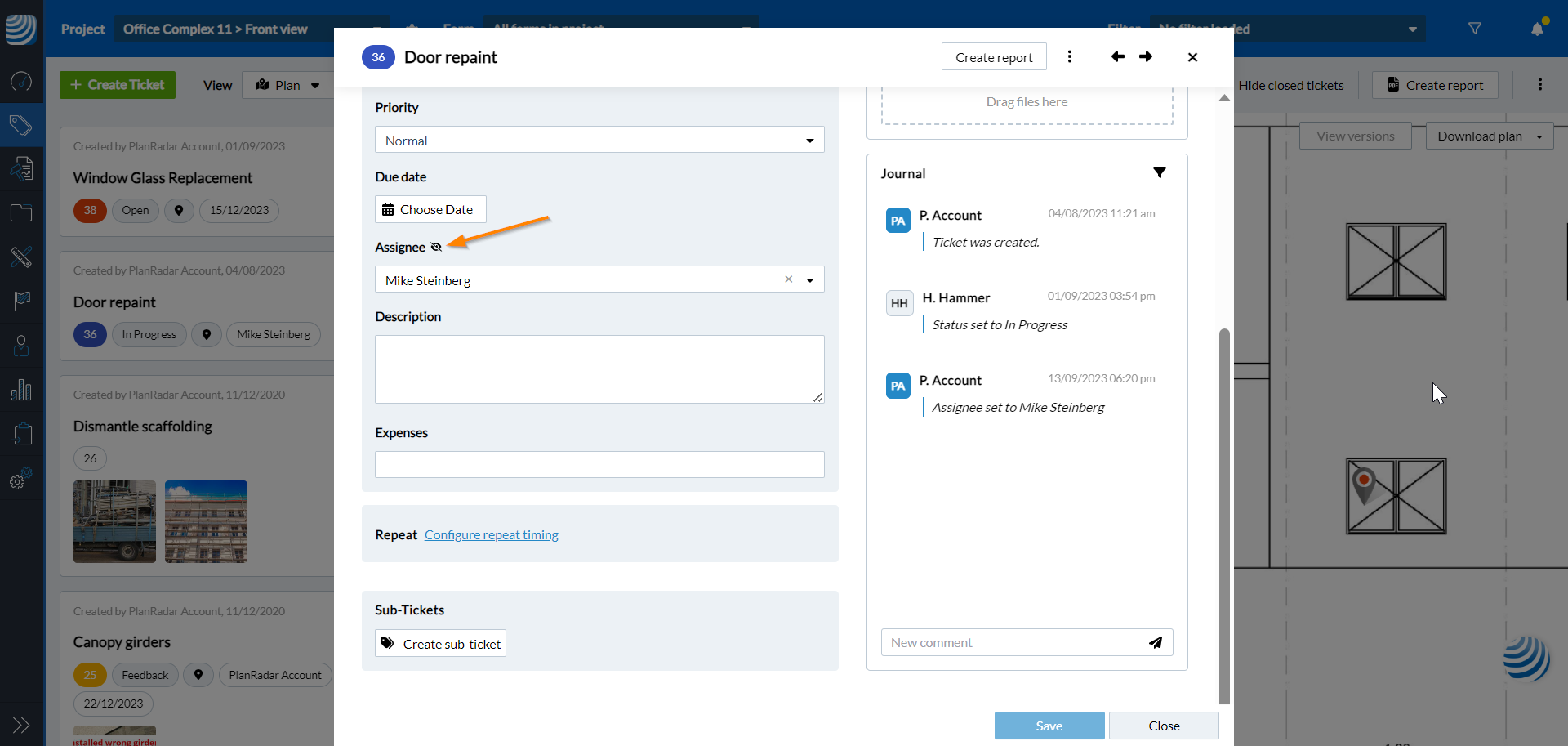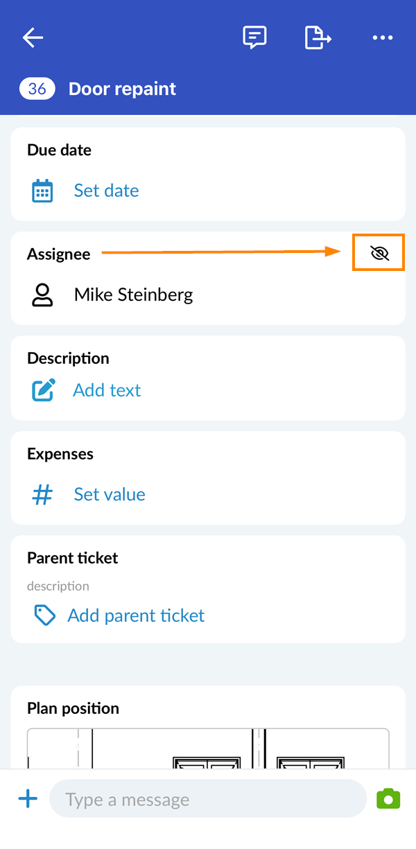 - Voir le symbole de l'œil à côté du champ de l'assigné