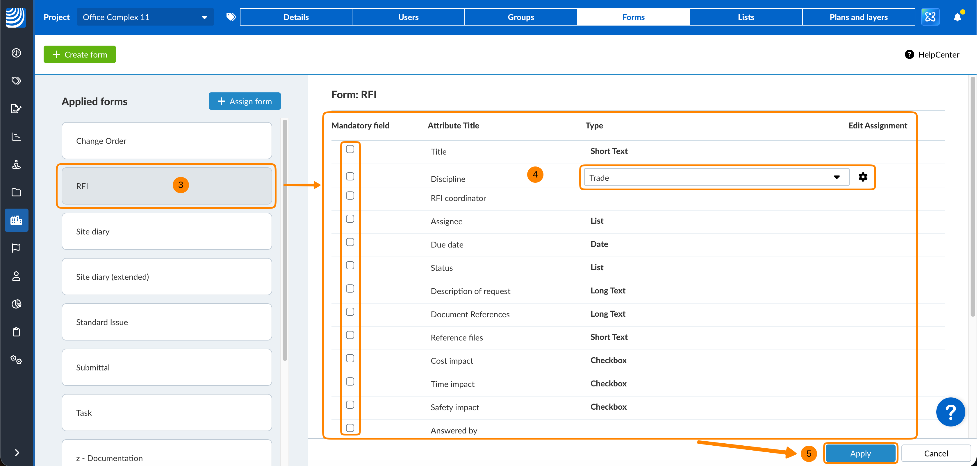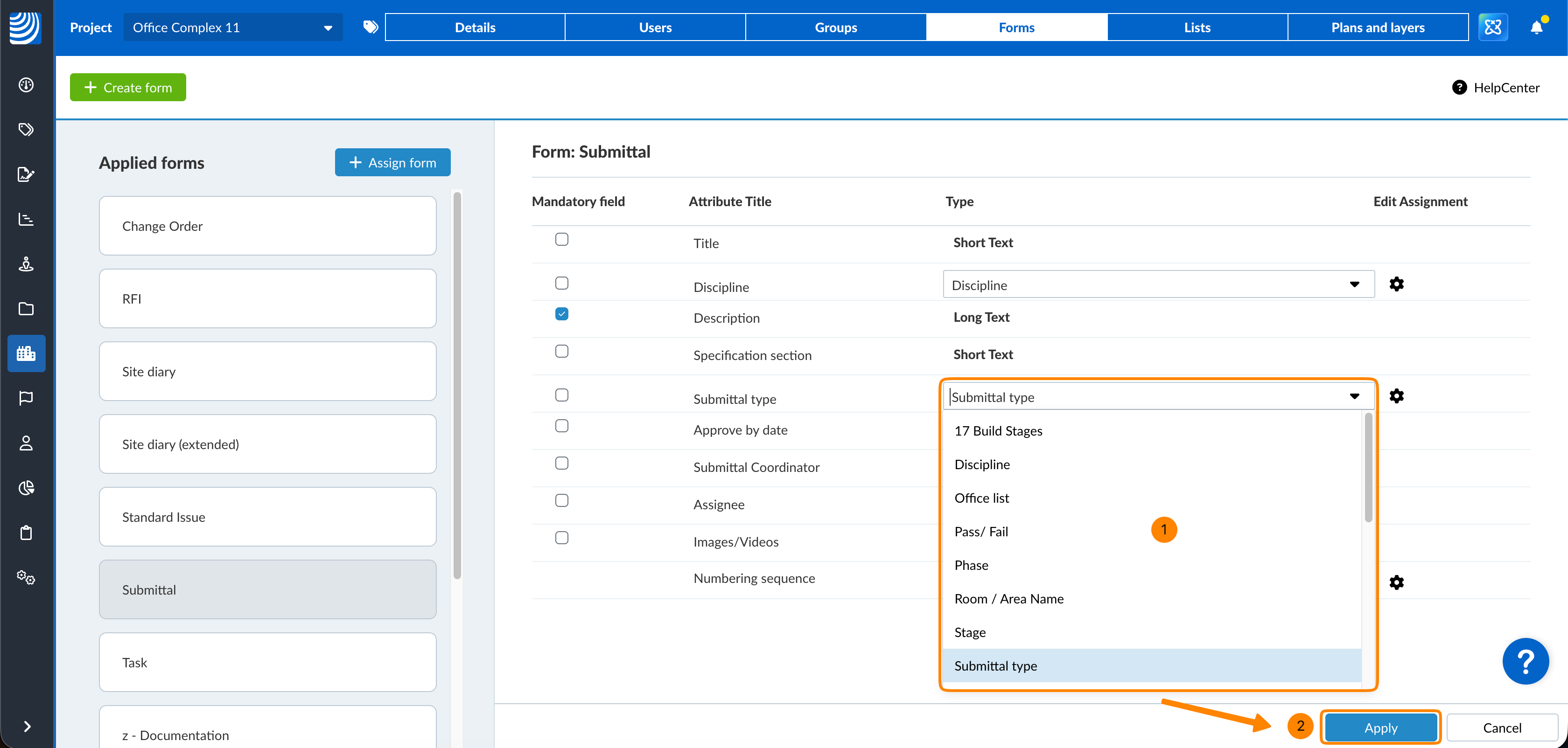 Affecter un formulaire à un projet