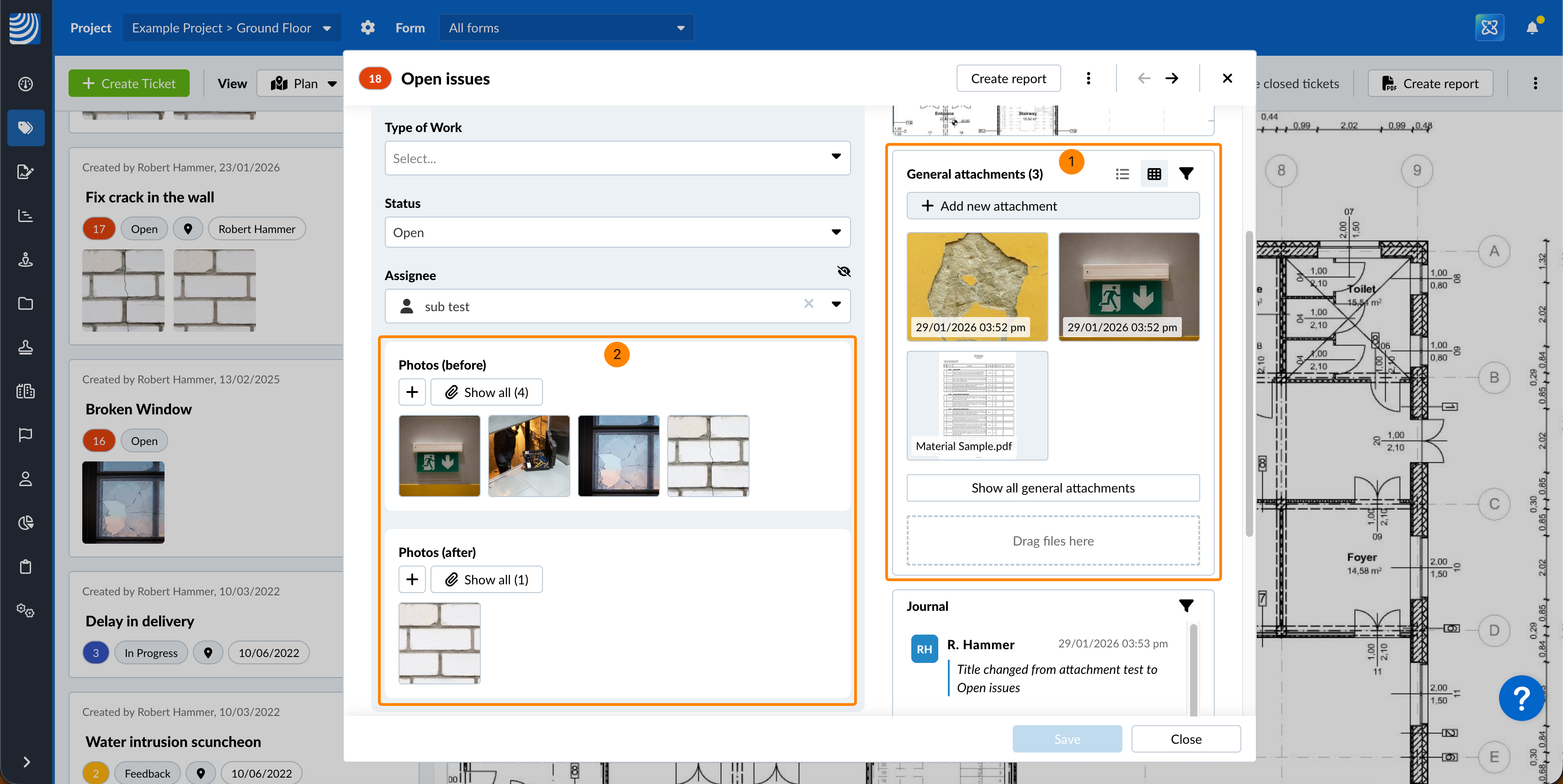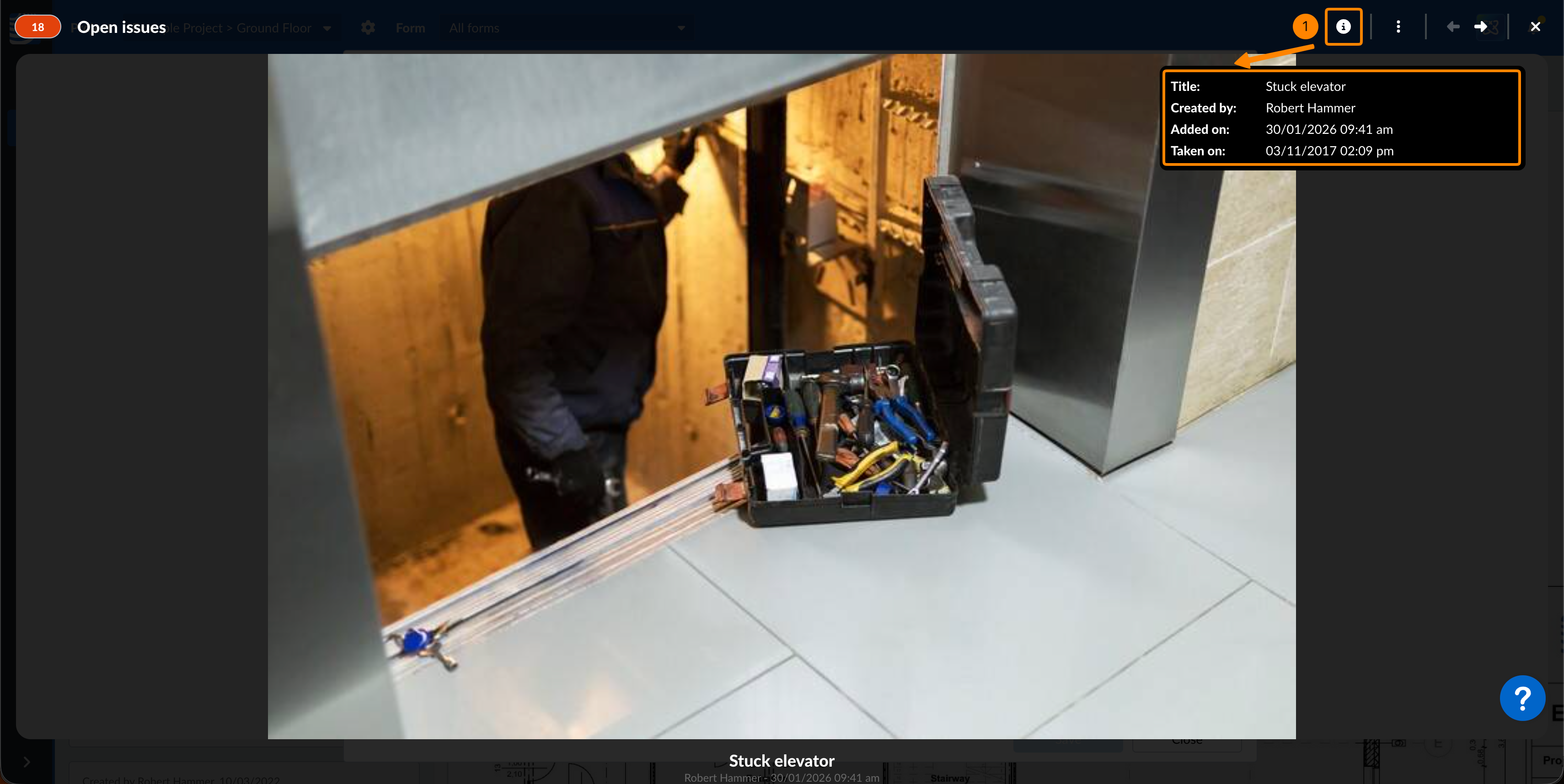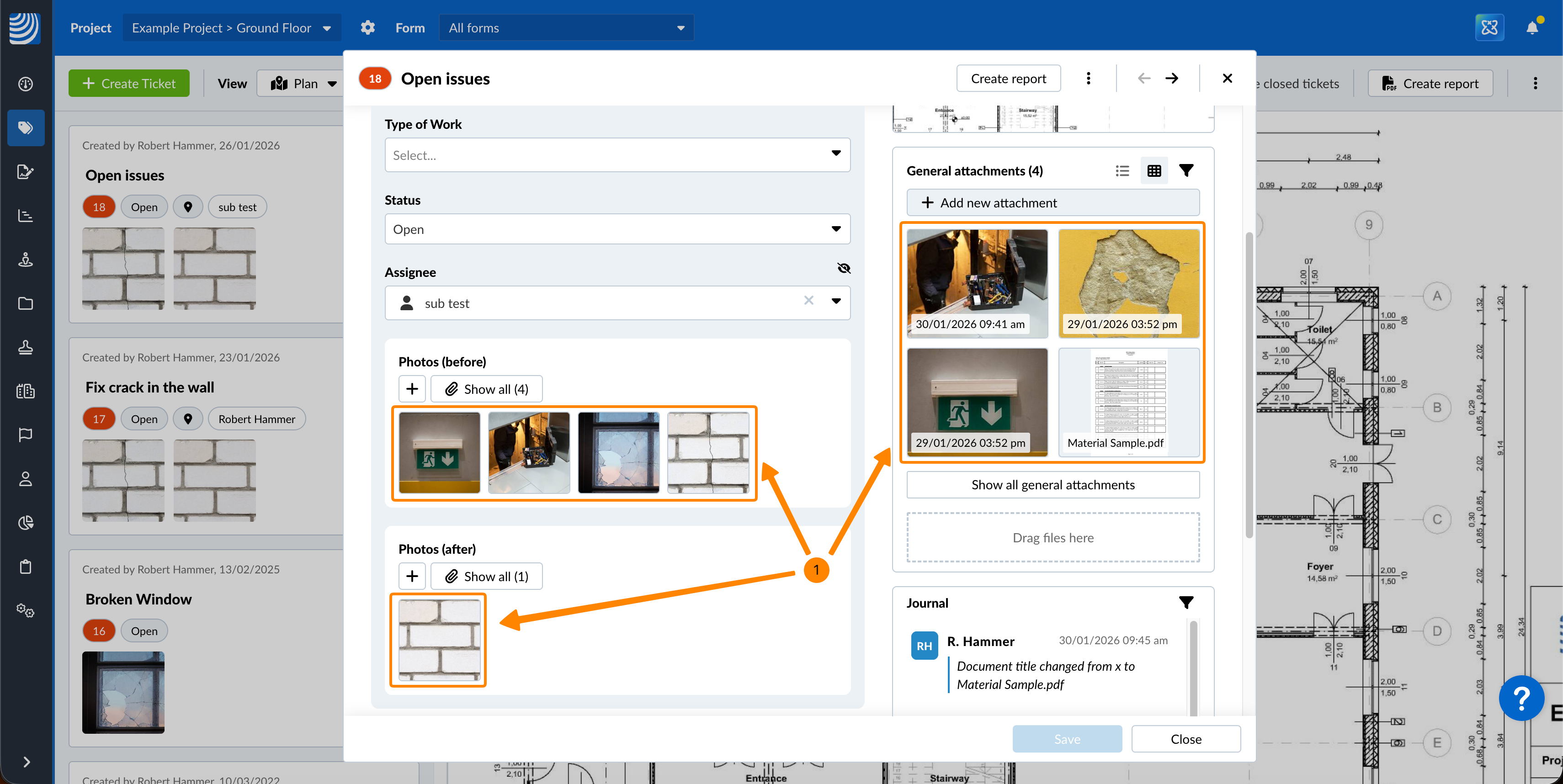 Les photos, les vidéos, les enregistrements vocaux et les fichiers PDF peuvent être visualisés directement sur PlanRadar.