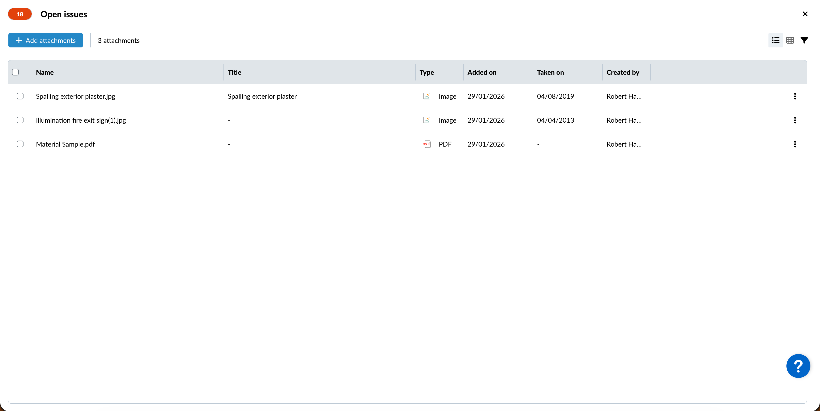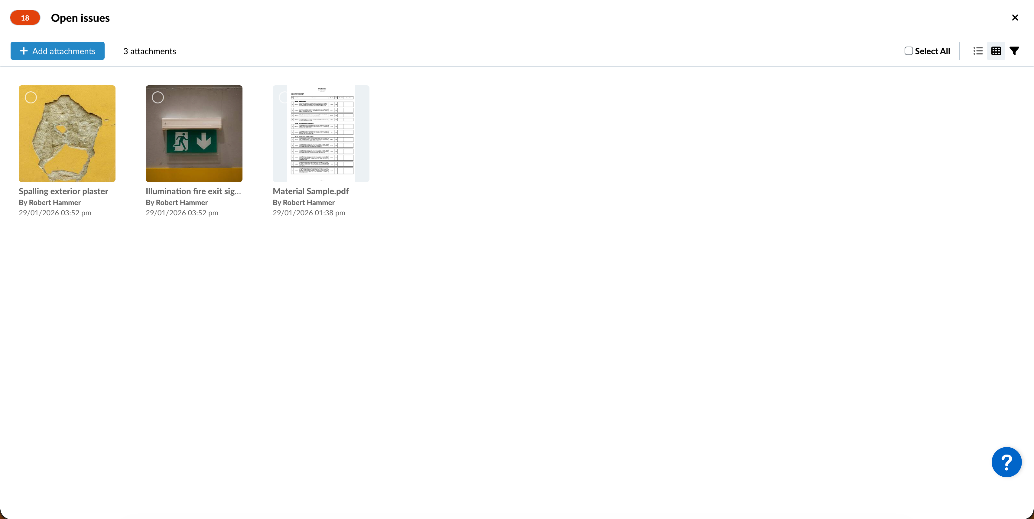 Il offre les mêmes options d'affichage que les galeries, notamment l'affichage en grille, l'affichage en liste, le filtrage et le tri. Pour en savoir plus, consultez Attachment Galleries > View Options.