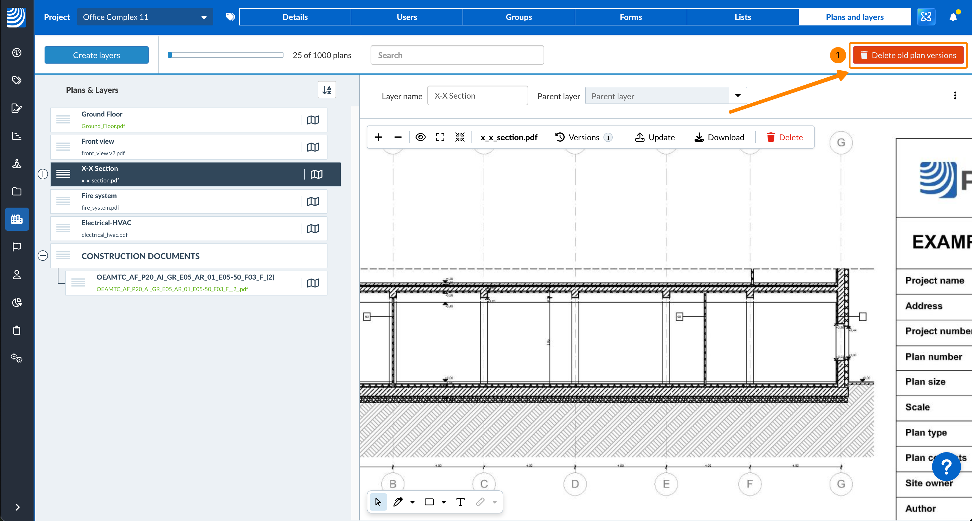 Si vous êtes sûr de ne plus avoir besoin des anciennes versions des plans, vous pouvez les supprimer en une seule fois. La version actuelle de chaque plan ne sera pas supprimée.