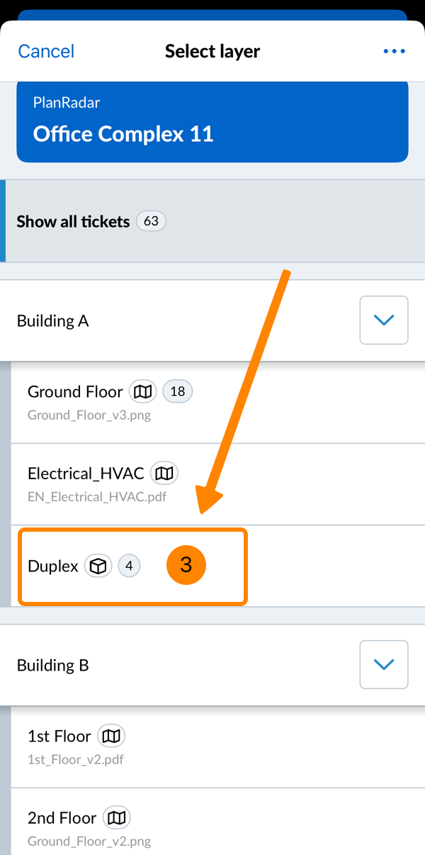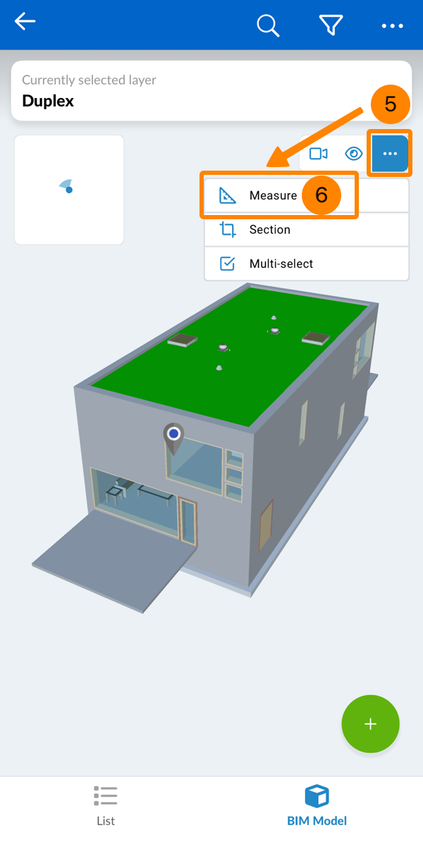 - Tapez sur un calque contenant un modèle BIM (marqué par une icône en forme de cube)