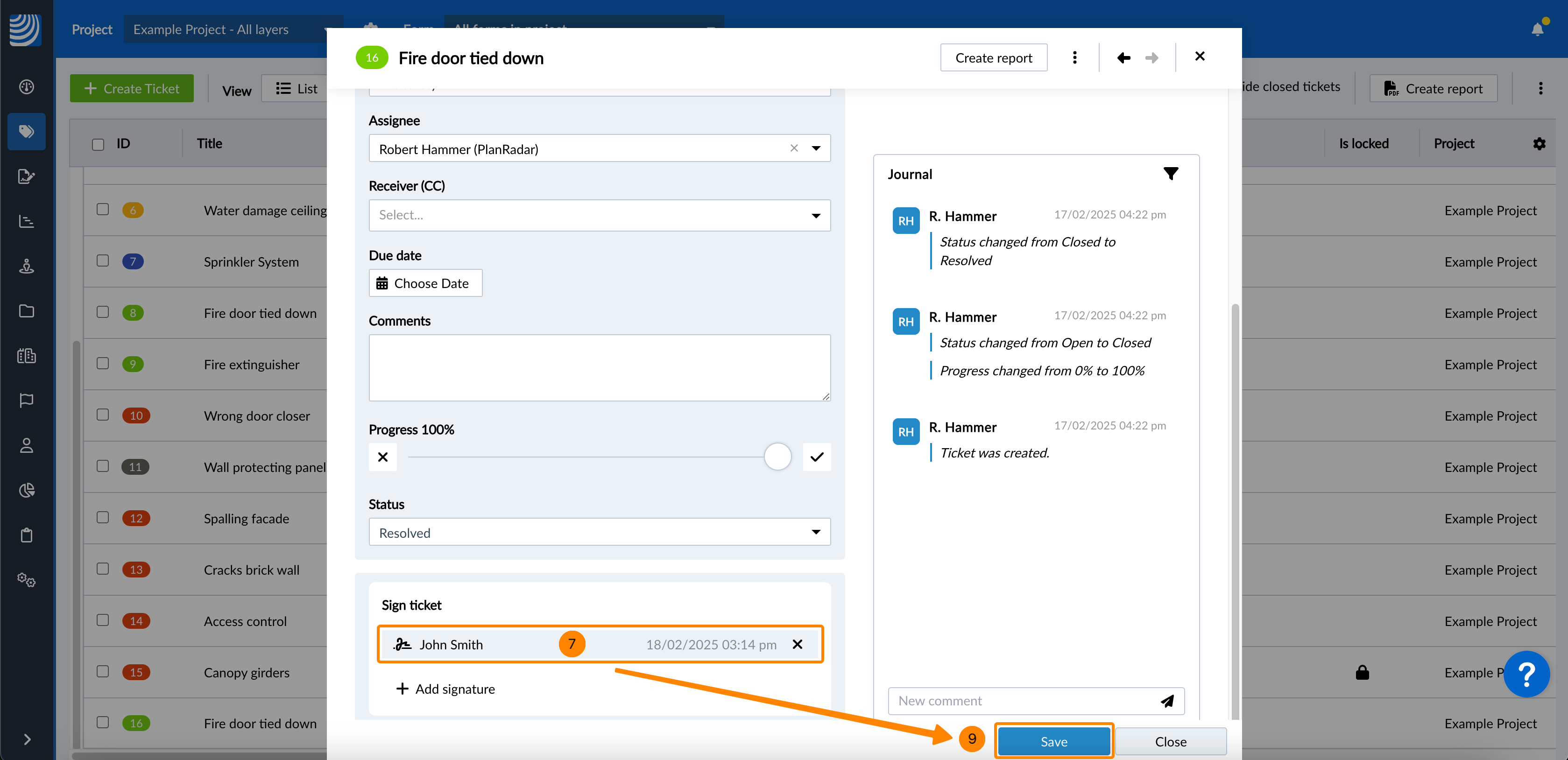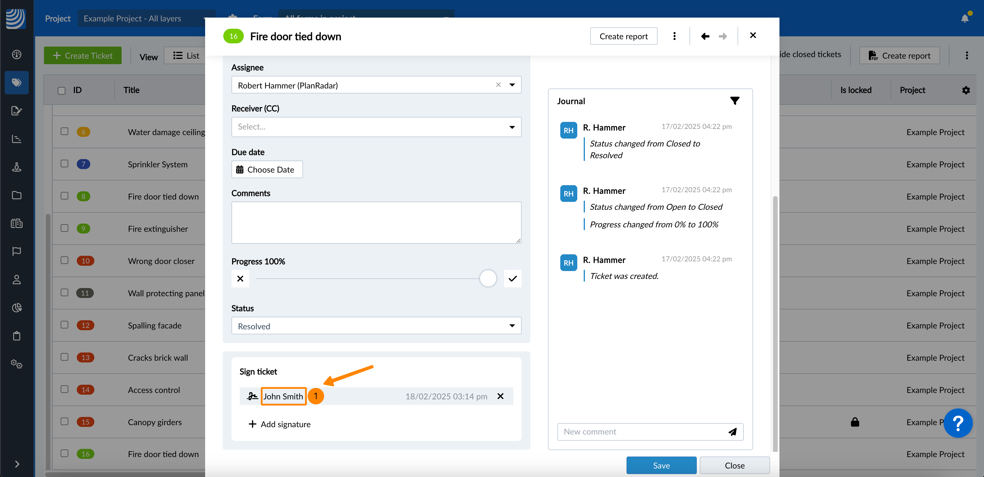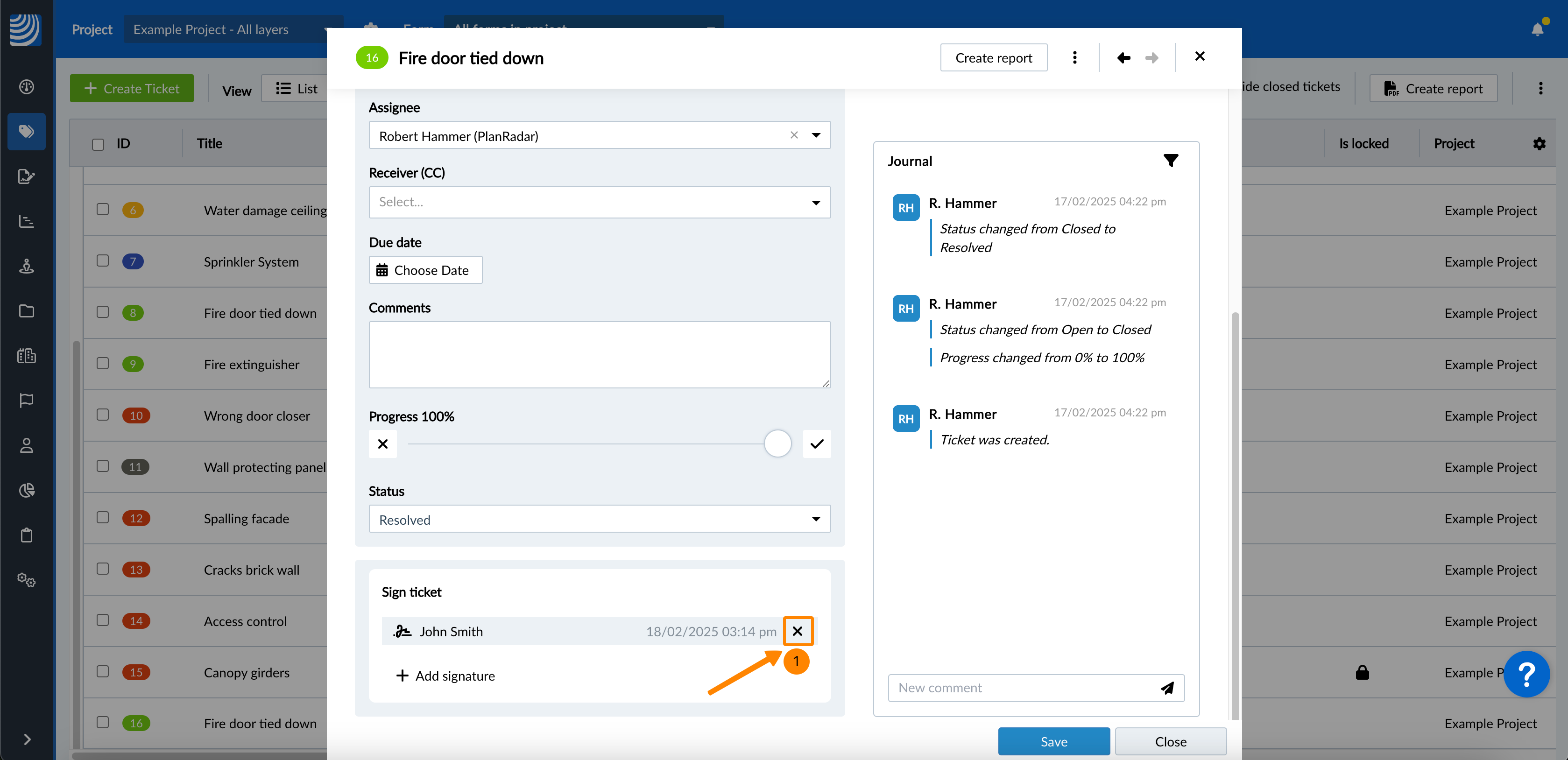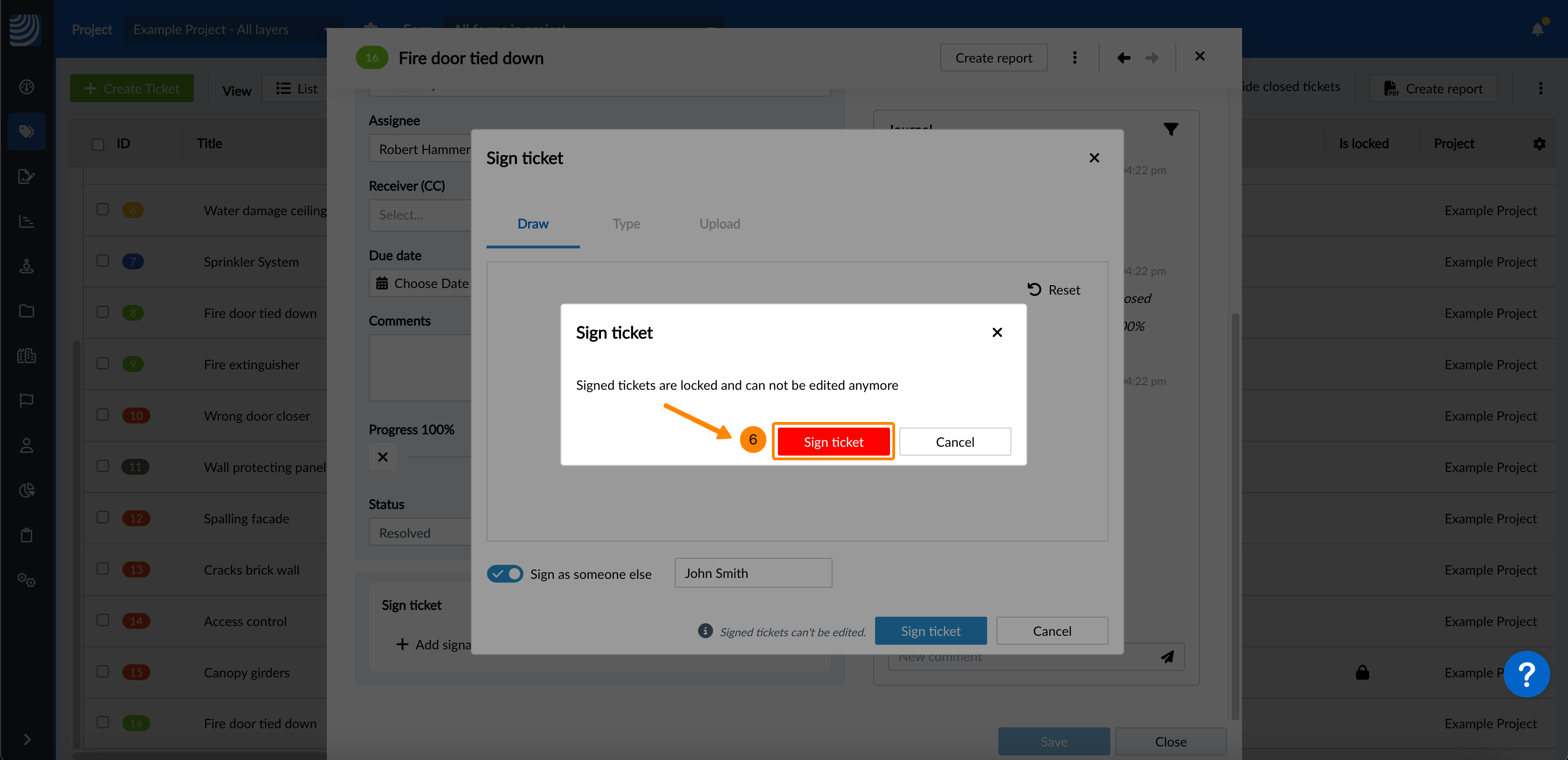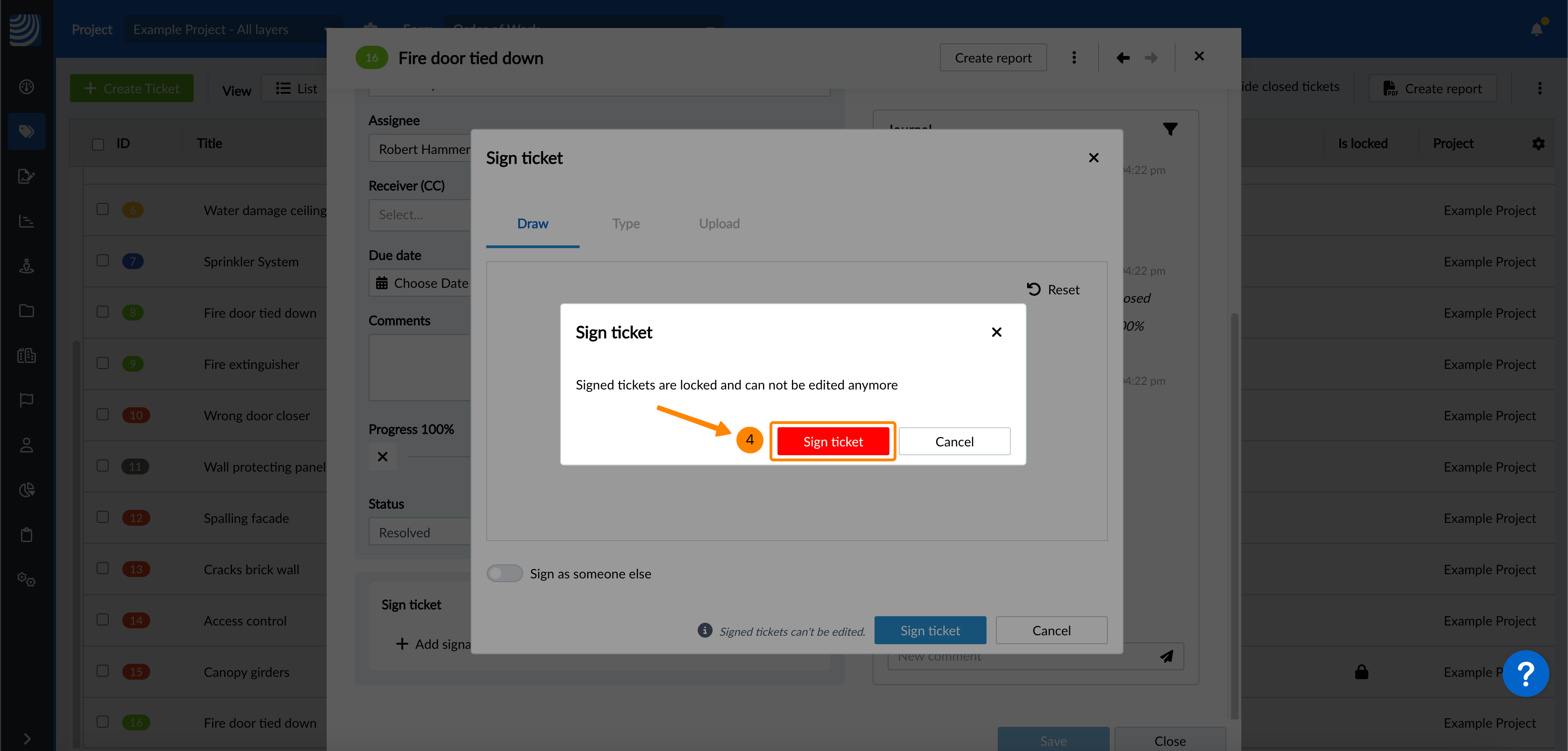 Facultatif : Cliquez sur Signer le ticket pour confirmer qu'il est également verrouillé (s'il ne l'est pas encore).
