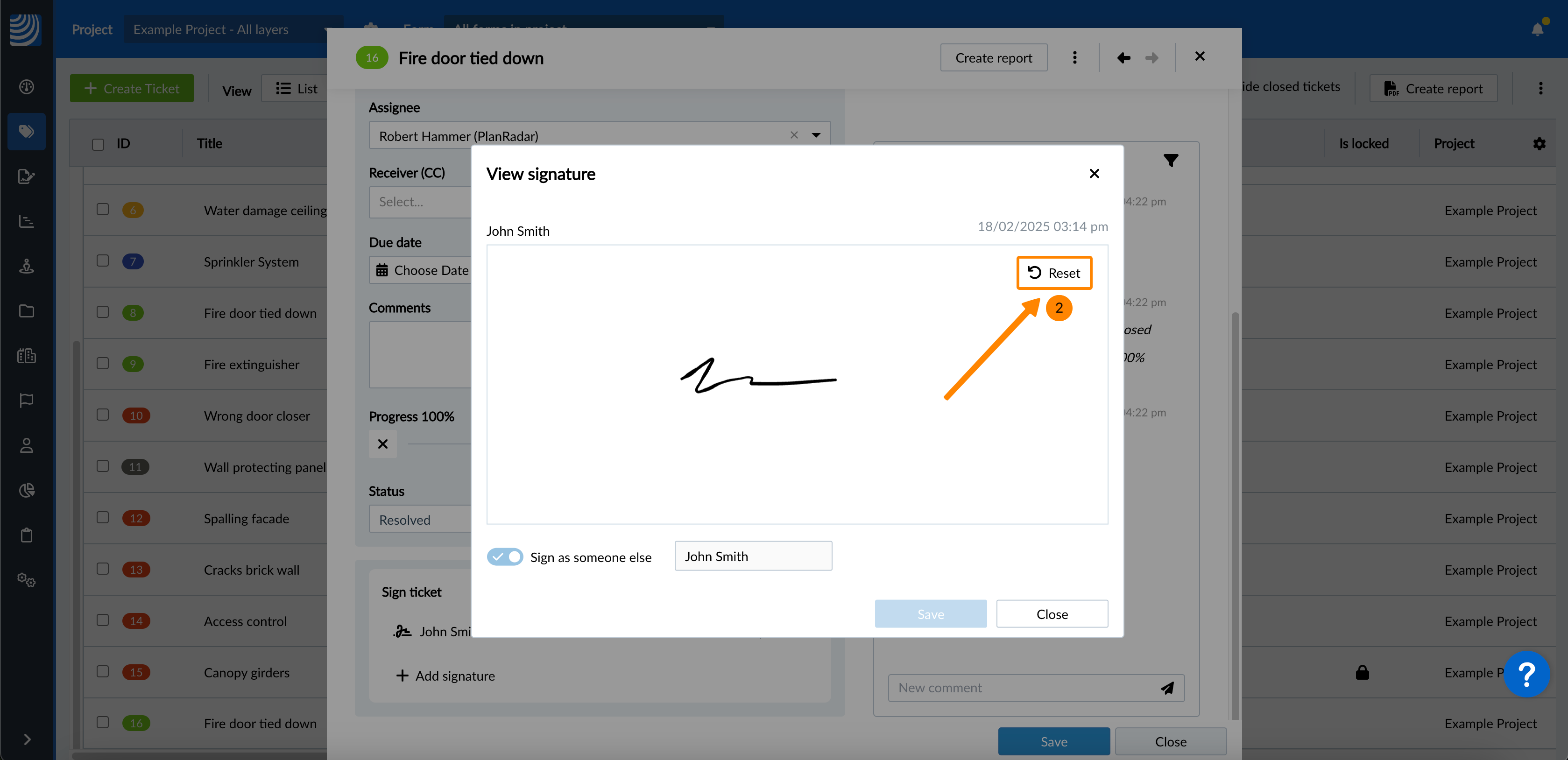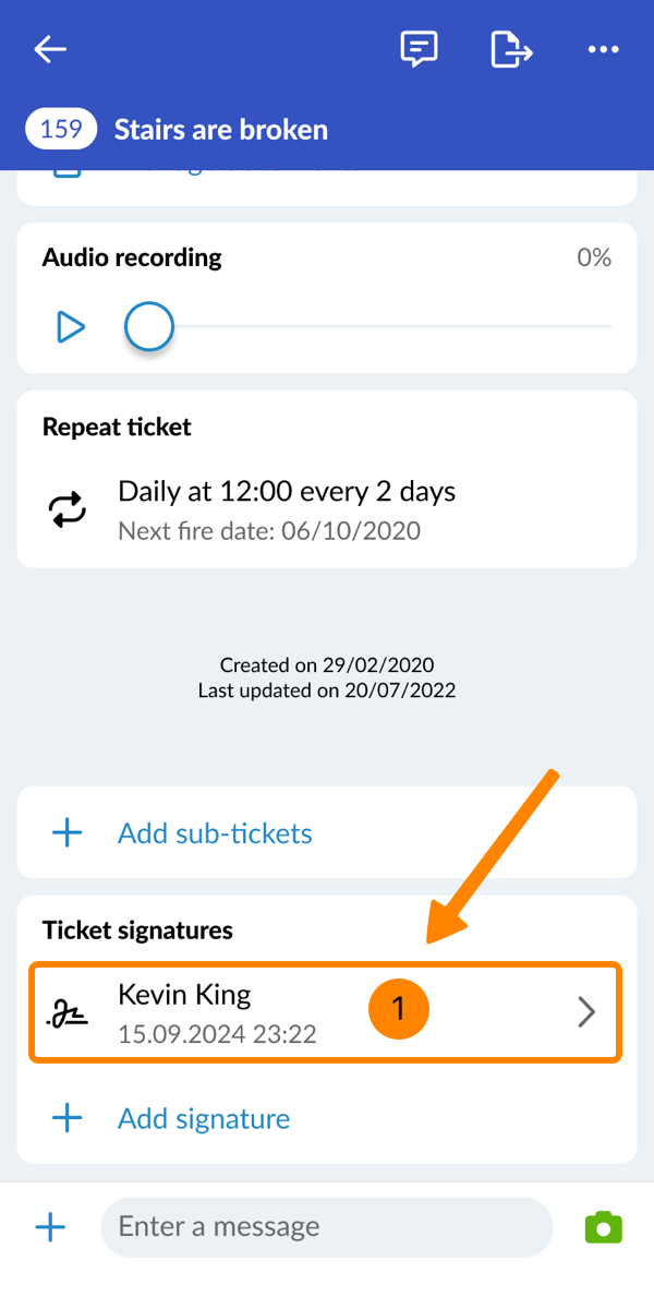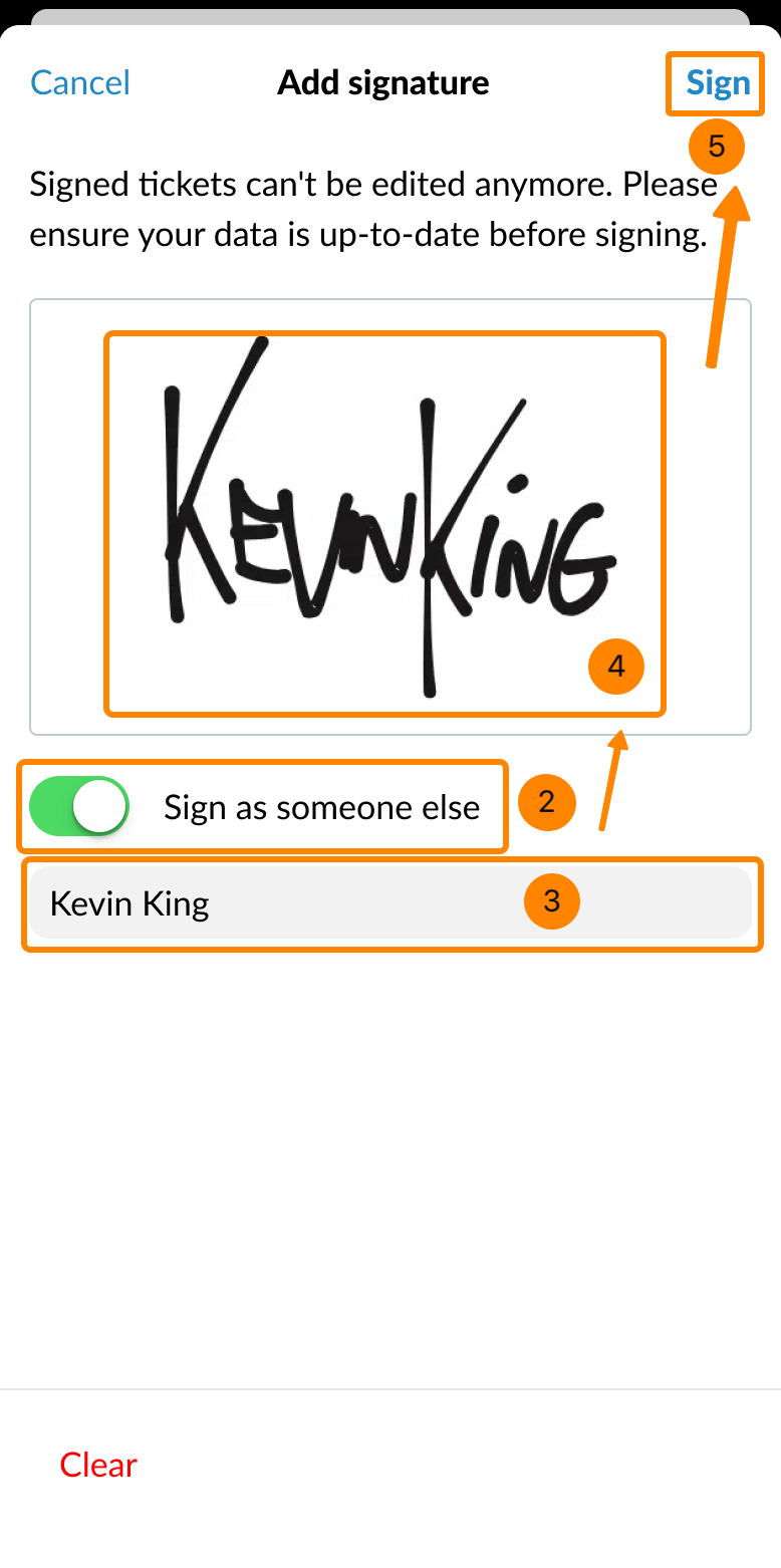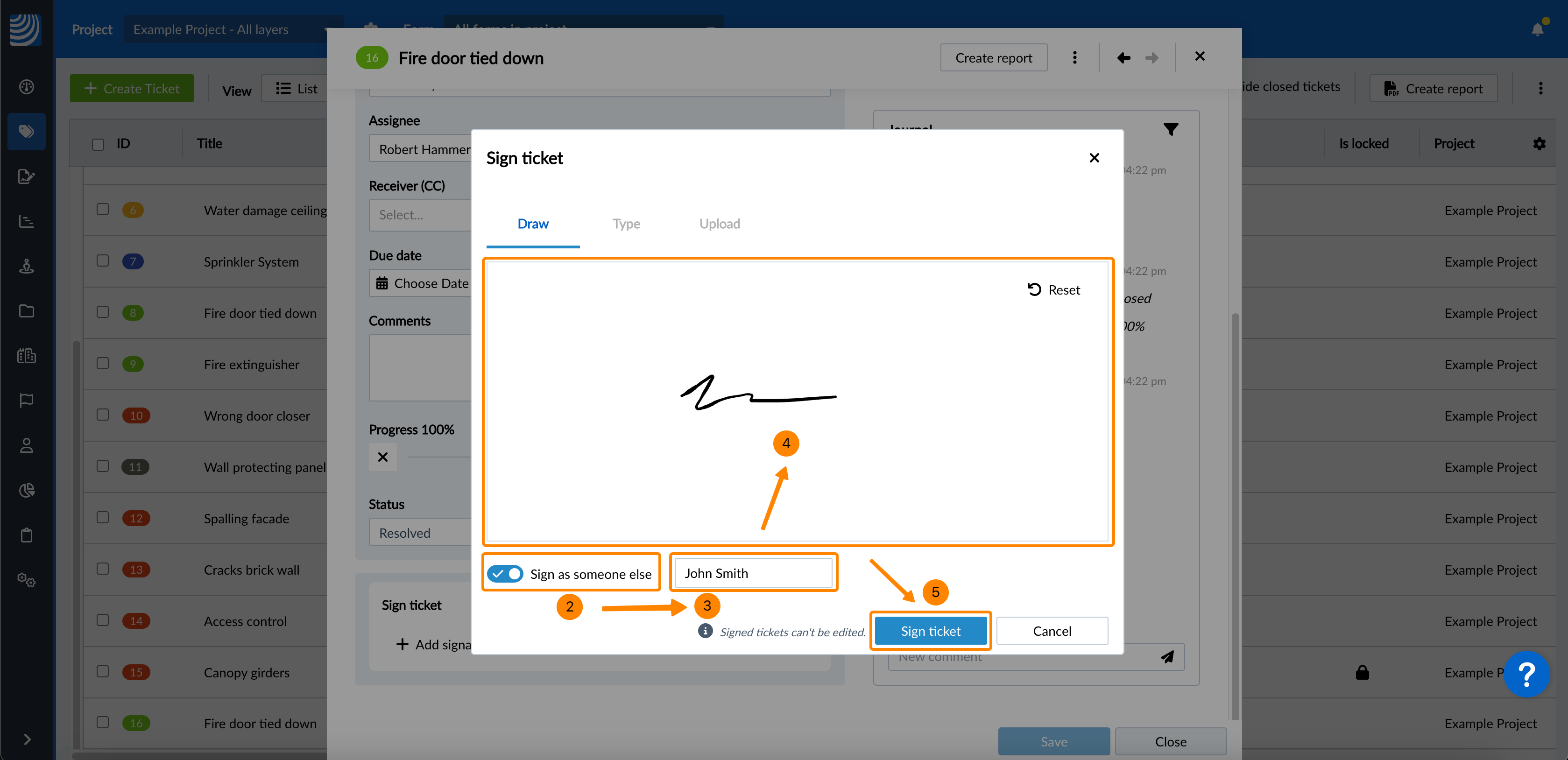 Lorsque vous visitez le site View & Edit a Ticket, vous pouvez le signer soit par vous-même (en tant qu'utilisateur connecté), soit par quelqu'un d'autre.