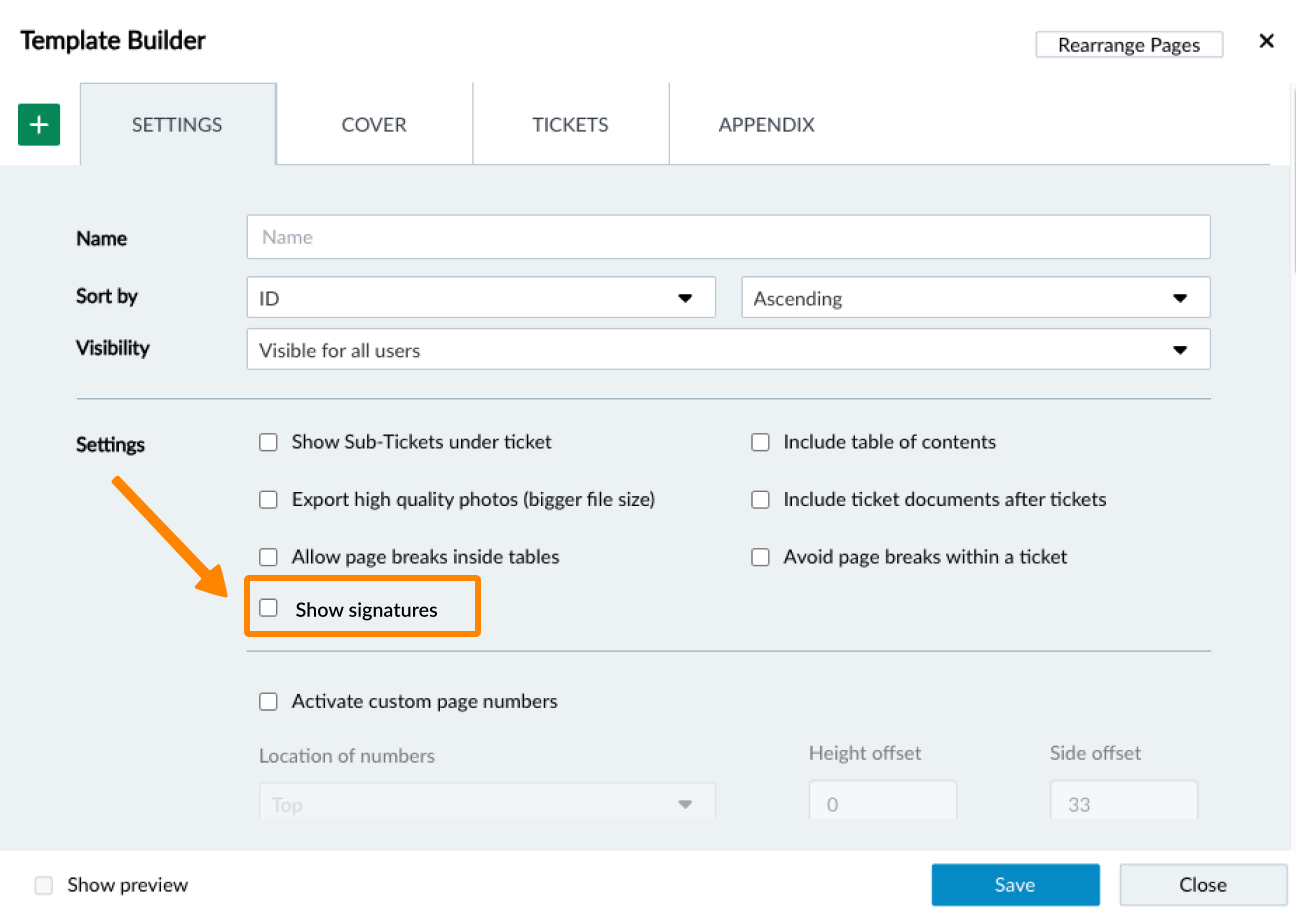 Afficher les signatures dans les rapports de tickets