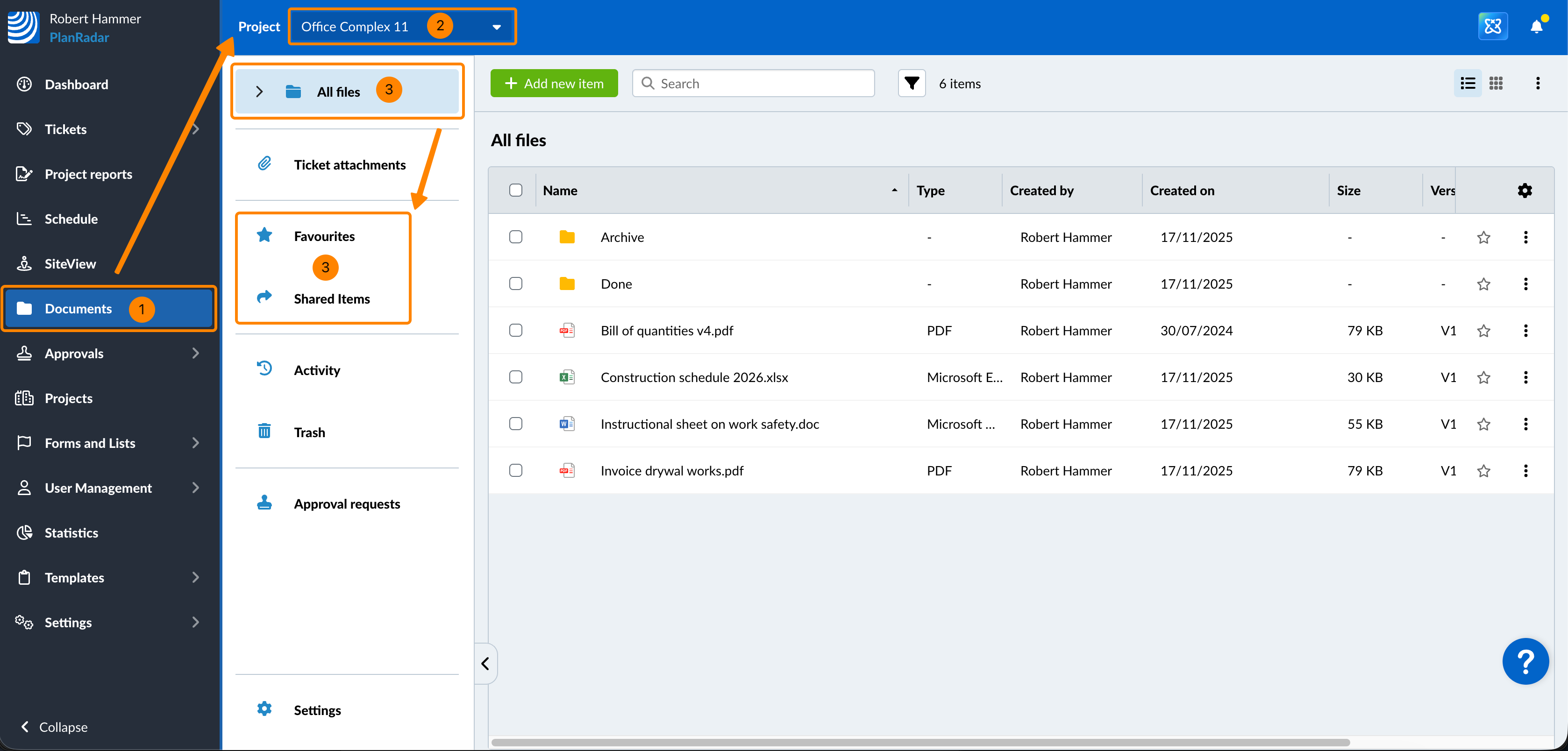 - Cliquez sur Tous les fichiers ou Favoris ou Éléments partagés