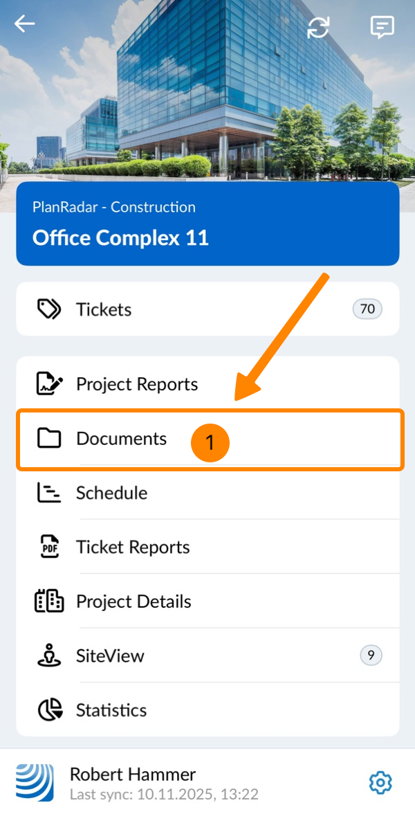 - Appuyez sur Documents dans le menu principal