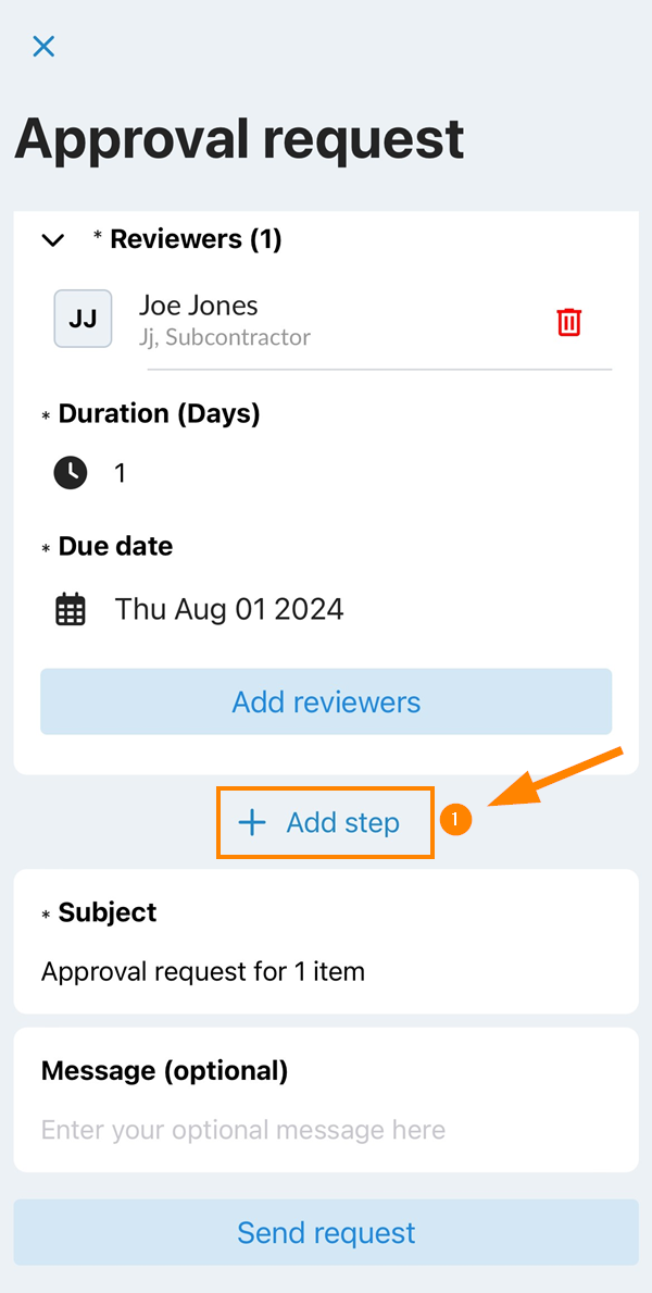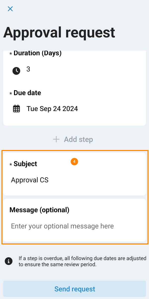 Lorsque vous Remplir et envoyer une demande d'approbation vous pouvez ajouter des étapes supplémentaires.