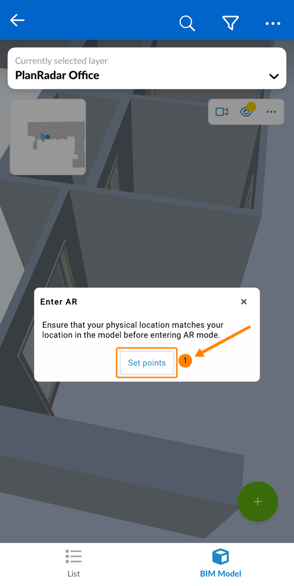 Assurez-vous que vous vous trouvez au même endroit physique que celui que vous visualisez dans le modèle BIM avant d'entrer en mode AR et d'aligner le modèle BIM.