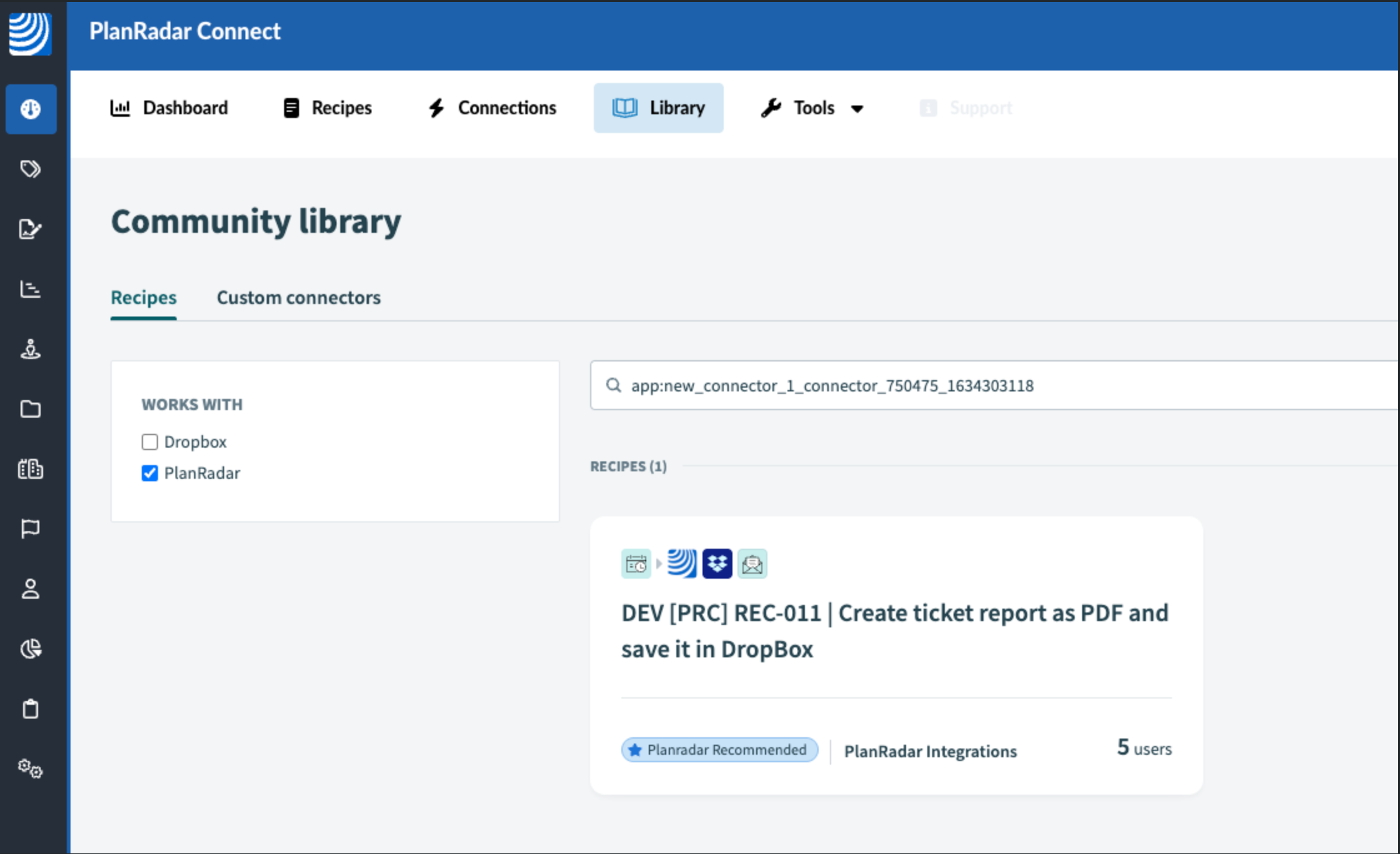 Découvrez des modèles supplémentaires ou des flux avancés dans l'onglet Resources de PlanRadar Connect.