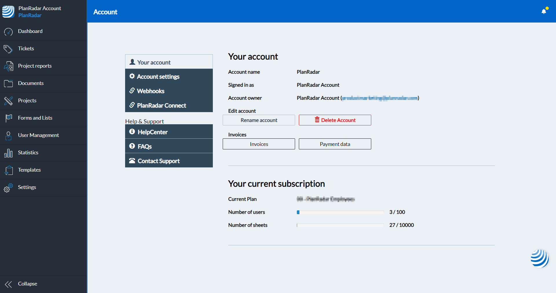 Račun je uvijek vezan za korisnika koji je kreirao račun registracijom za 30-dnevno probno korištenje PlanRadara. Ovaj korisnik se zove vlasnik računa.