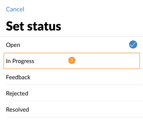 - Dodirnite U tijeku za postavljanje novog statusa.