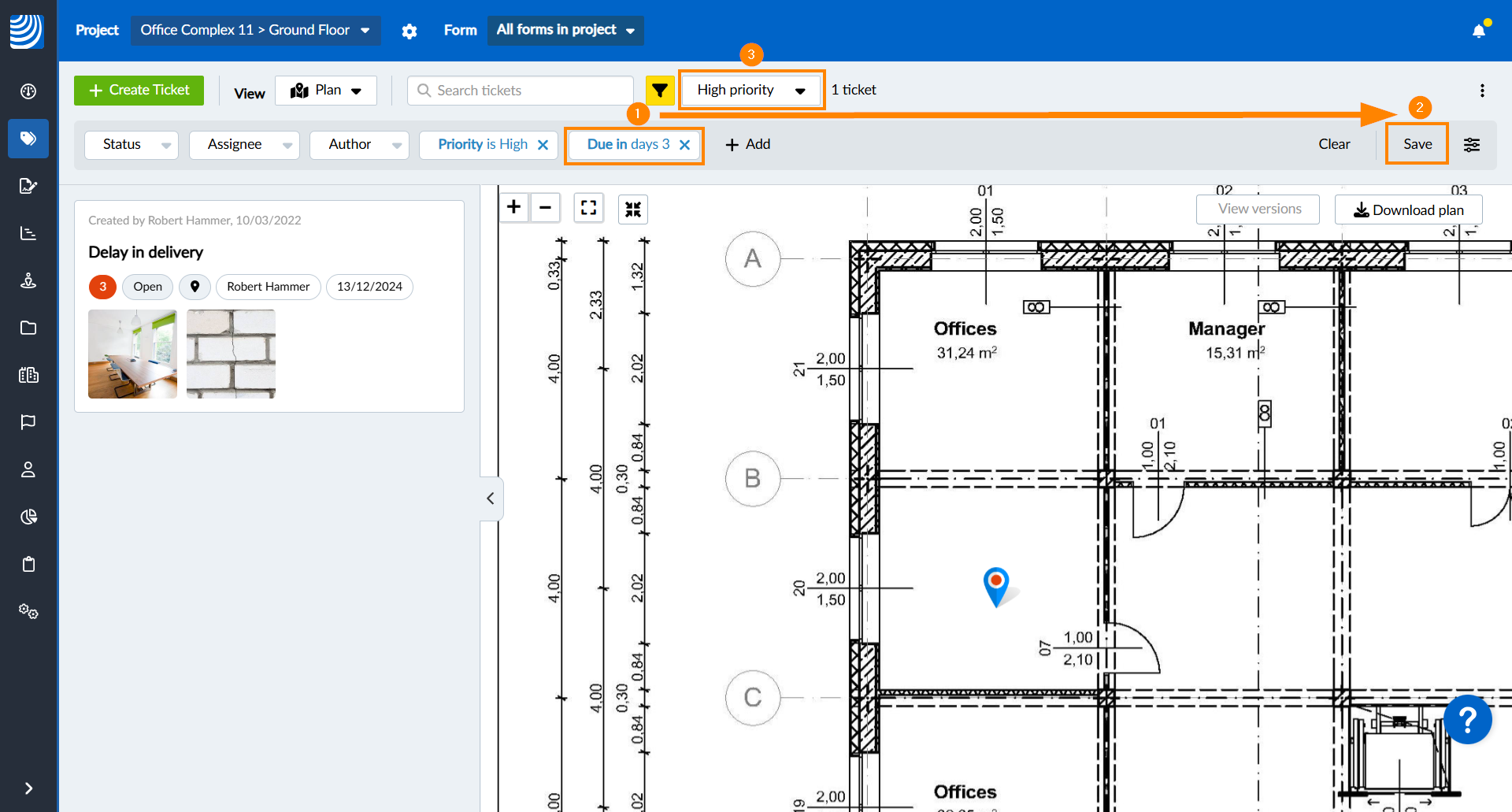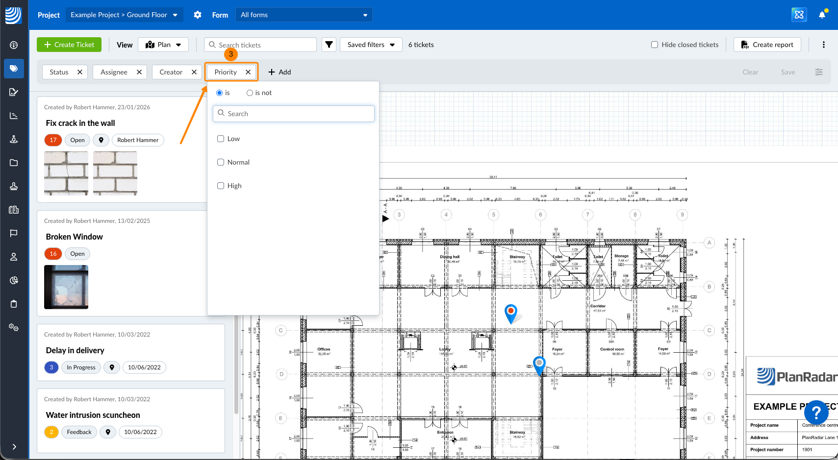 Za filtriranje ulaznica koje imaju vrijednost Visoka u polju karte Prioritet :