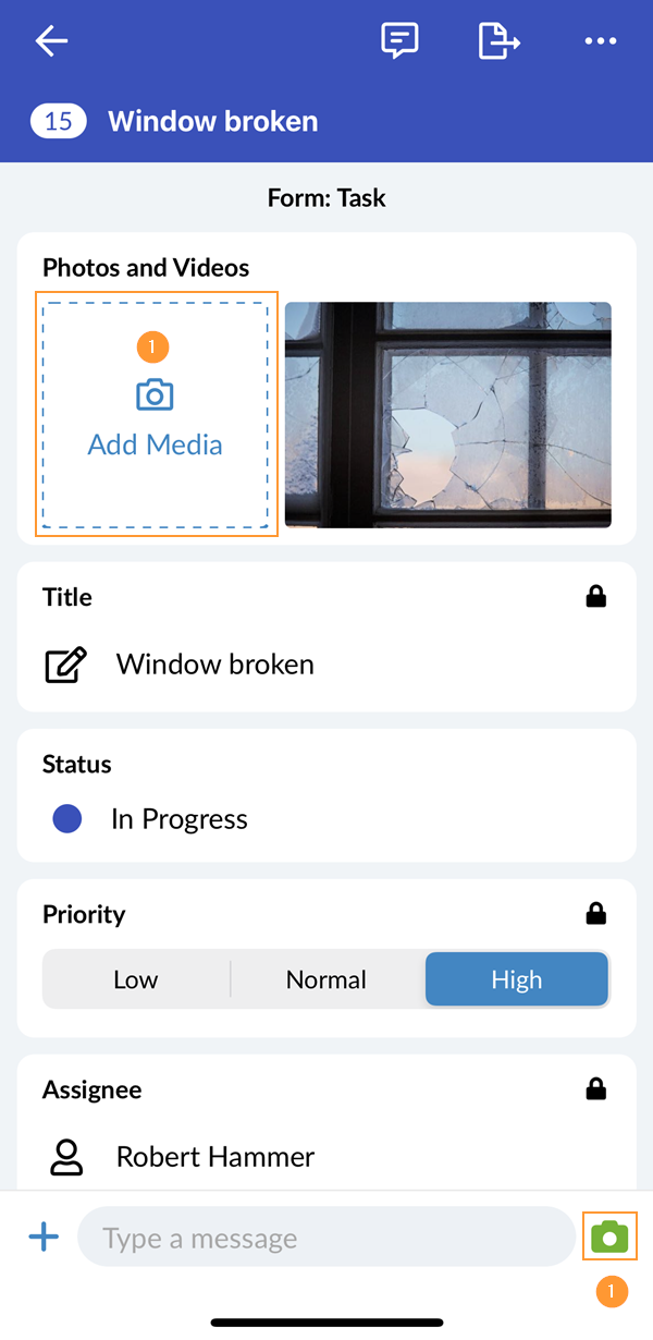- Dodirnite Dodaj medij ili ikonu kamere u donjem desnom kutu da odaberete/snimite fotografiju